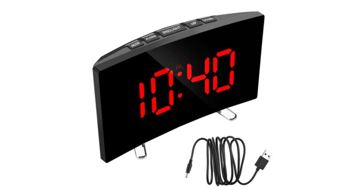 - Large, Curved LED Display: Perfectly visible time, from any angle.