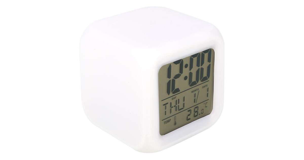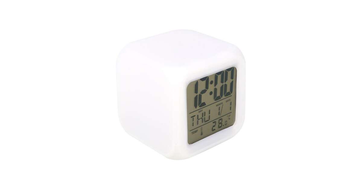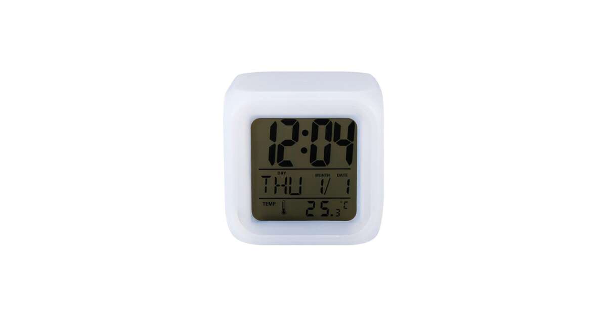 This compact and stylish alarm clock is perfect for anyone looking for a practical and aesthetically pleasing way to keep track of time. The built-in thermometer and calendar functions add extra usefulness, while the color-changing LED lighting creates a pleasant atmosphere in the bedroom.
