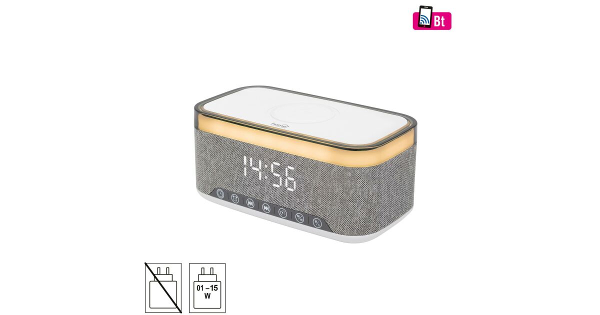 Wake up in style and comfort with the HOME LTCR06 multimedia alarm clock! This versatile device not only tells the time, but also functions as a wireless charger, Bluetooth speaker and night light.