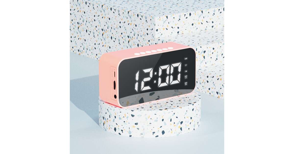 iSEN S15 Wireless Digital Clock, Pink, Bluetooth, LED Display, Alarm, FM Radio, HD Speakers, TF Card Playback, 1200mAh description of