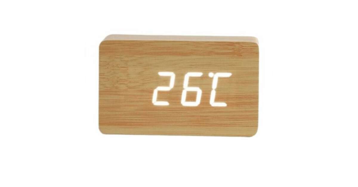 Wooden Alarm Clock with LED Display and Thermometer - Stylish and Practical ⏰