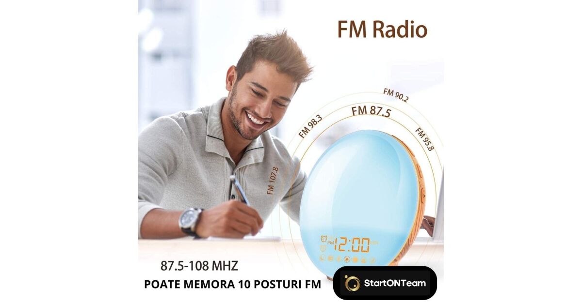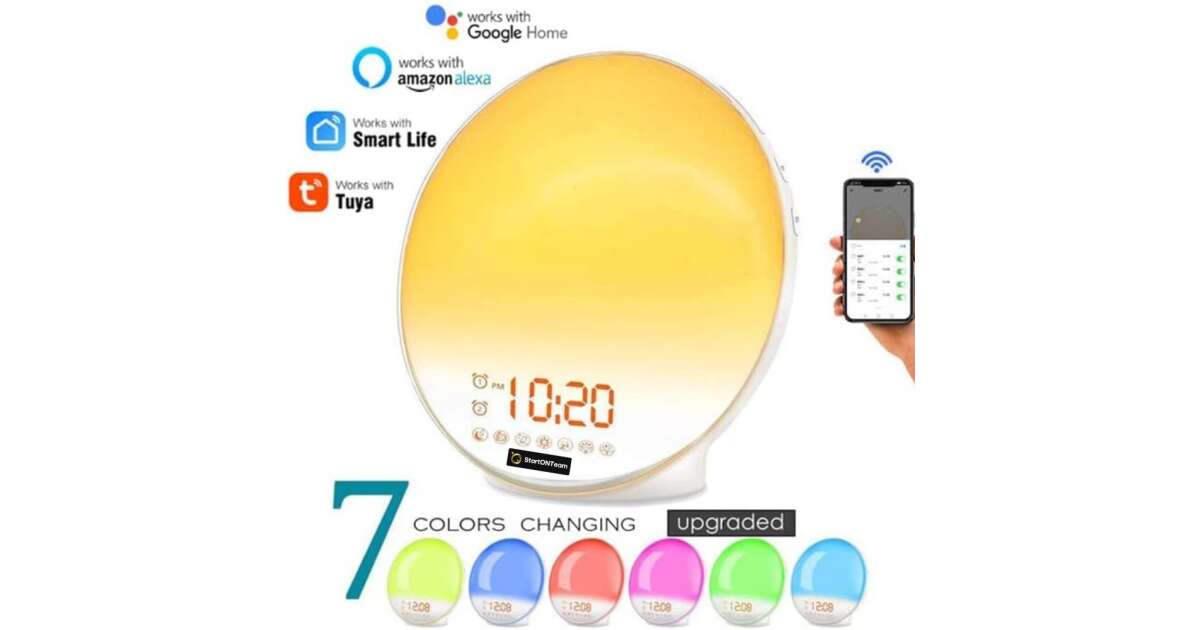 StartONTeam Smart LED Lamp, FM Radio, with Clock and Alarm, Sunrise and Sunset Simulation, White Noises, 7 LED Colors, USB Port, App Controllable, Alexa/Google Home, White