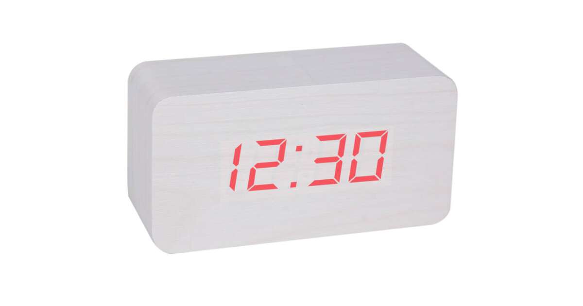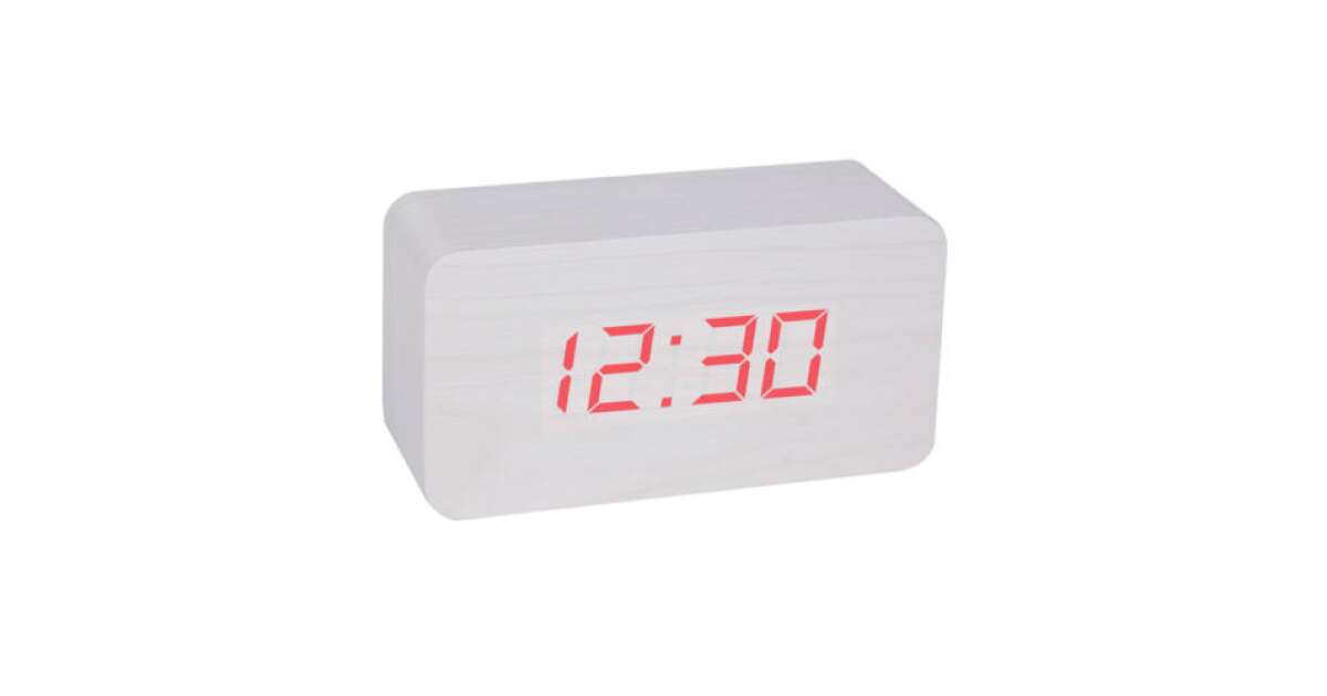 Wood Effect Clap-Activated Alarm Clock with Temperature Display White
