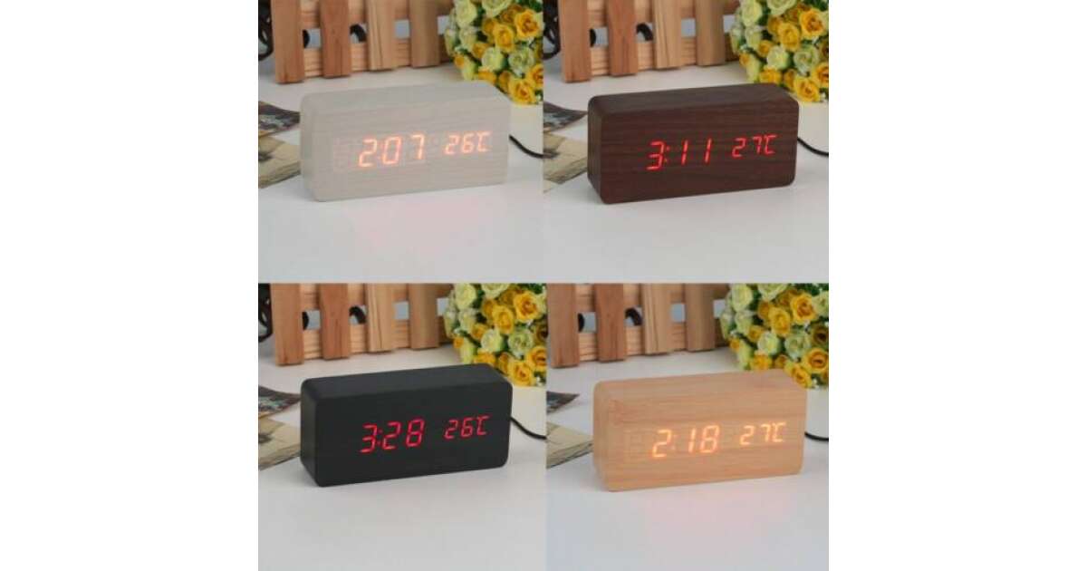 Cool Wooden-Look LED Alarm Clock: Clap to Wake Up! ⏰