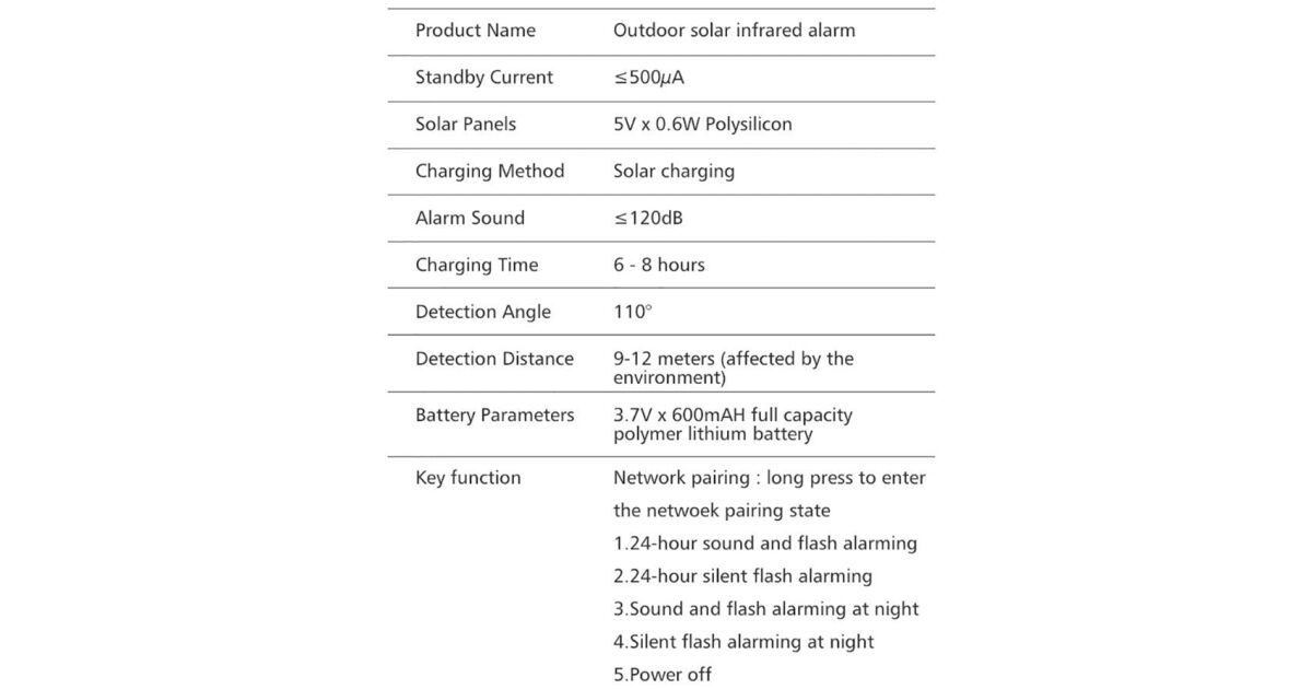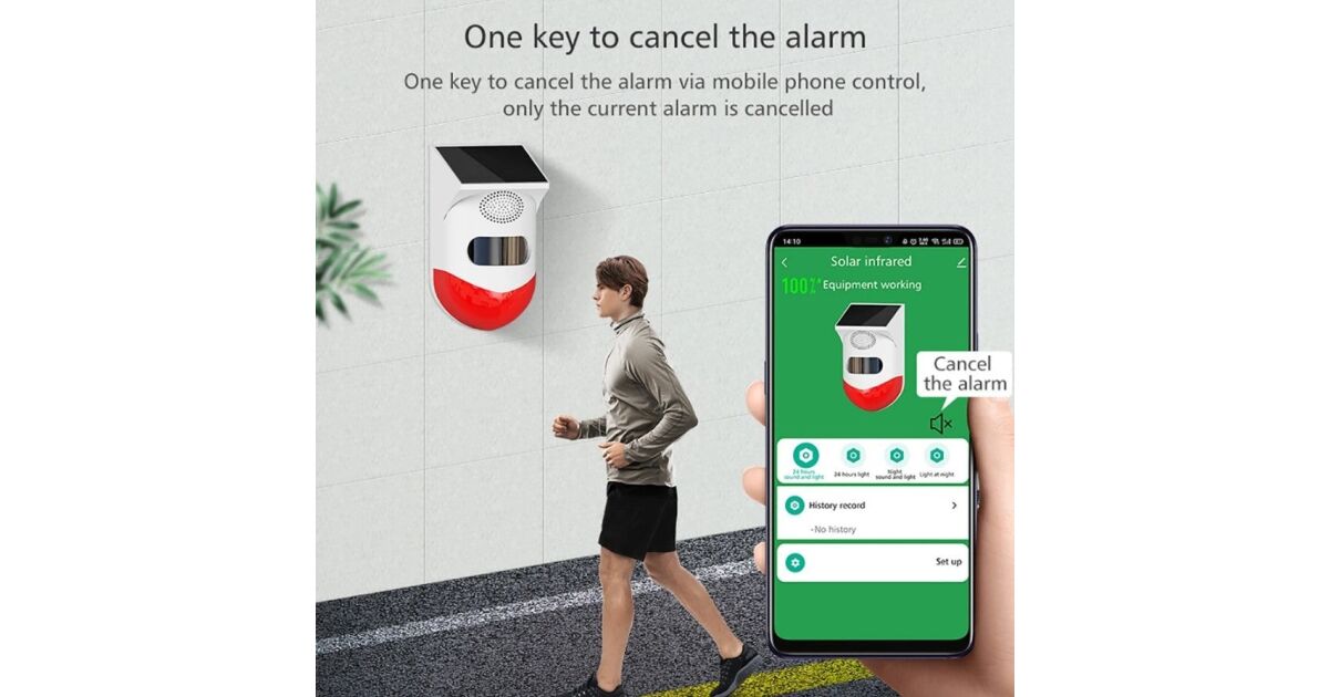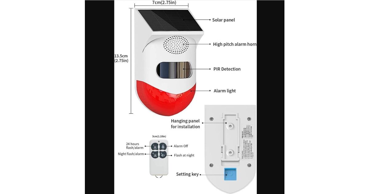 This solar alarm with PIR motion sensor is the perfect solution to protect your home, garden, or business. With its compact design and smart functionalities, it ensures efficient and reliable security.