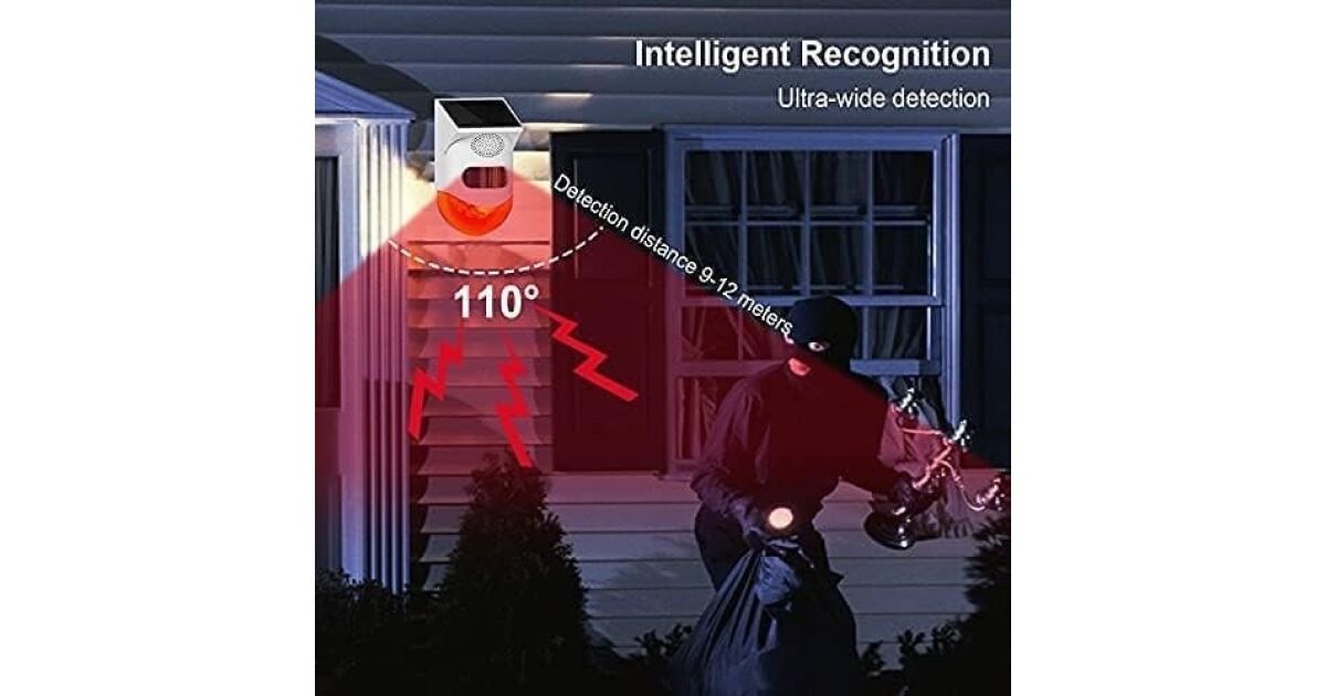 Solar PIR Motion Sensor Alarm, Solar or USB Charging, IP65, with Remote Control, App Control, White-Red reviews