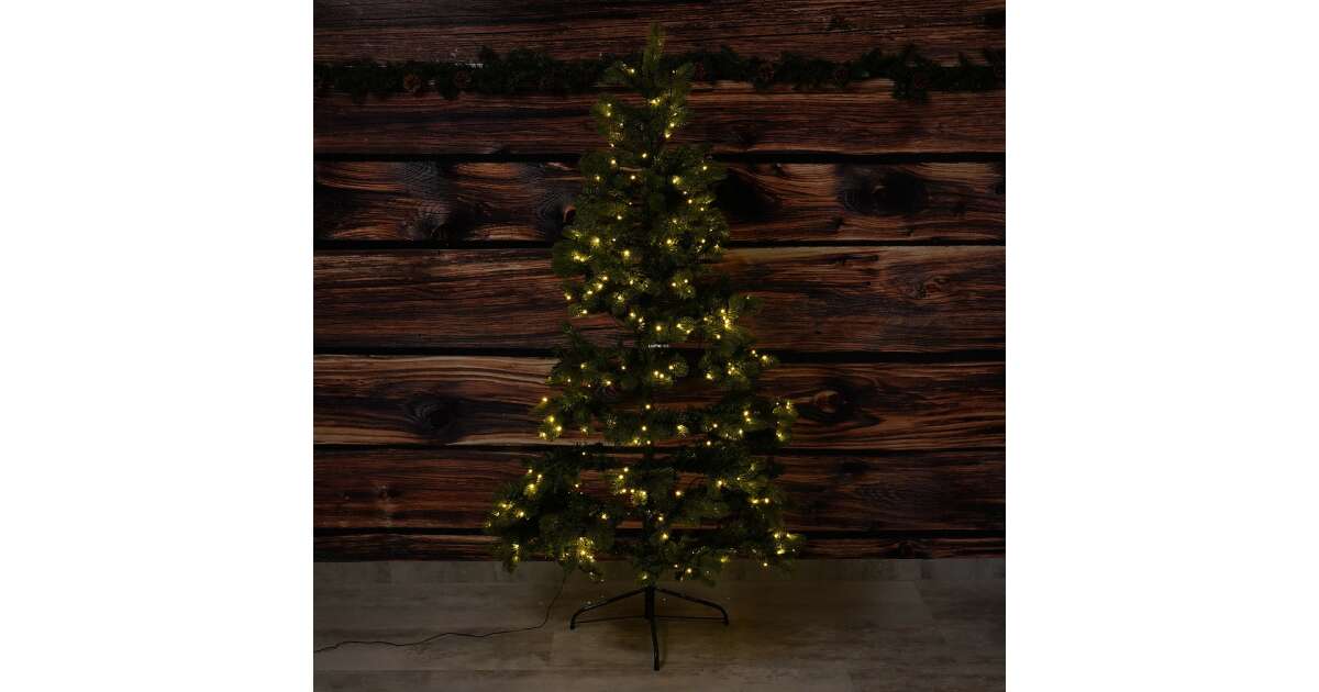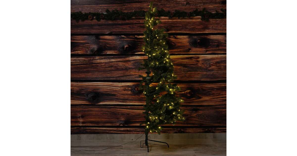 Create a cozy Christmas atmosphere in your home with this beautiful 180 cm tall half Christmas tree! The built-in warm white LED lights give the tree a festive sparkle, so you'll need less extra decoration. Perfect for smaller rooms too, as its space-saving design doesn't take up much space.