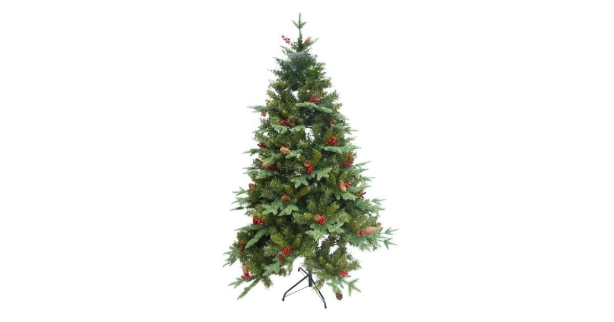 -Green Flippy Artificial Christmas Tree, 180 cm high, 115 cm diameter, wall/corner adjustable, with 56 red pine cone ornaments, 774 branches, metal stand