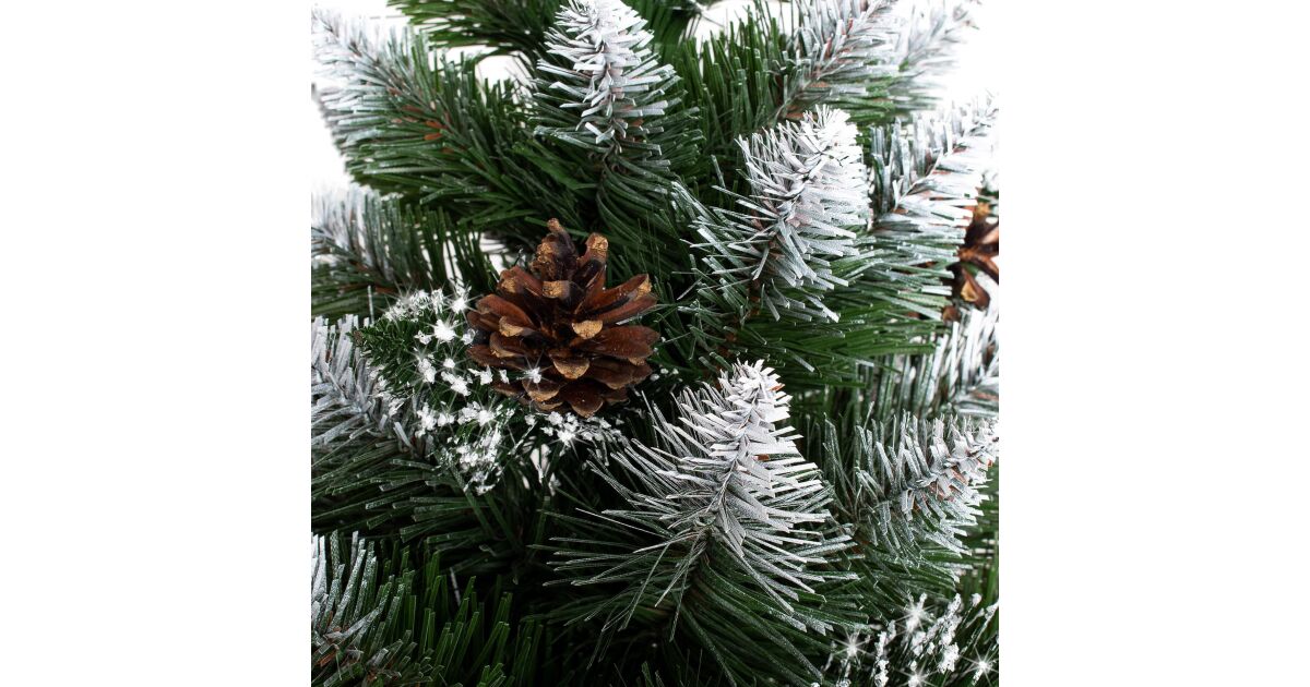 Springos Realistic Snowy Artificial Christmas Tree - 220 cm - Diamond Pine, with Pine Cones