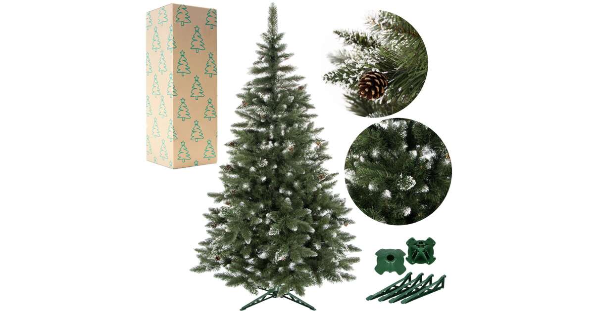 This beautiful 180 cm tall Springos artificial Christmas tree is the perfect choice for your holiday decorations. The product is of excellent quality and sturdy construction, as confirmed by customer feedback. With its lush, realistic branches and leaves covered in a delicate layer of snow, it creates a true Christmas atmosphere in your home. The pine cones and sparkling details add an extra touch of elegance.