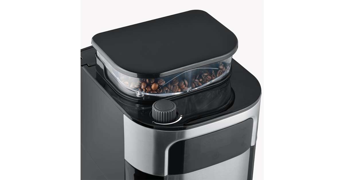 Severin Coffee Maker with Grinder, 1.25 Liter Capacity, Compatible with Beans/Ground Coffee, 200g Ground Coffee Capacity, Adjustable Grind, 3-Level Aroma Setting, Graduated Glass Carafe, Timer, Touchscreen