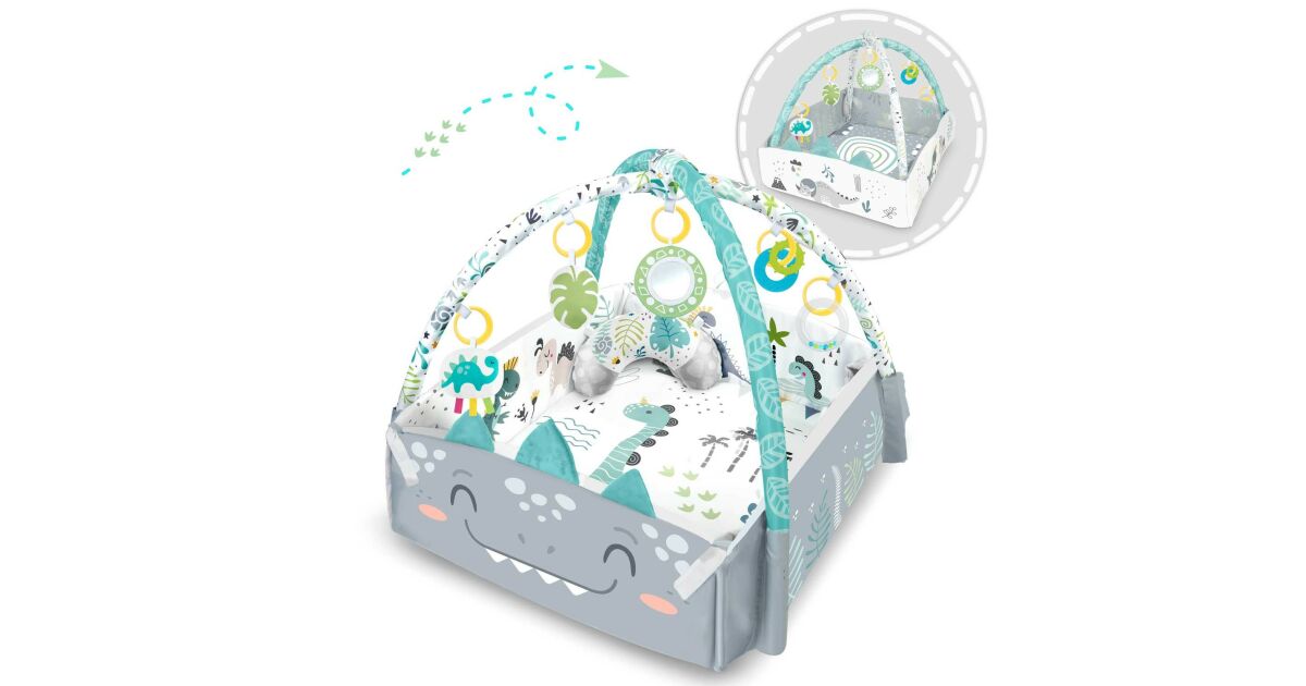 This Ricokids 3-in-1 play mat is perfect for your baby's early development and entertainment. Made from soft, pleasant-to-touch material with an adorable dinosaur design, it's guaranteed to capture your little one's attention. The raised sides provide a safe space for your baby, preventing rolls. The colorful toy arch with hanging toys develops fine motor skills and observation skills. The mat is double-sided for even more variety.