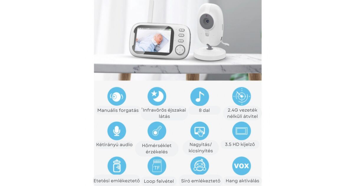 Wireless Baby Monitor RoHS™ 603, XXL 3.2-inch LCD Screen, Baby Audio Video Monitoring System, Sound Sensor, NIGHT NIGHT VISION mode, Talk-Back function, Ambient Temperature e