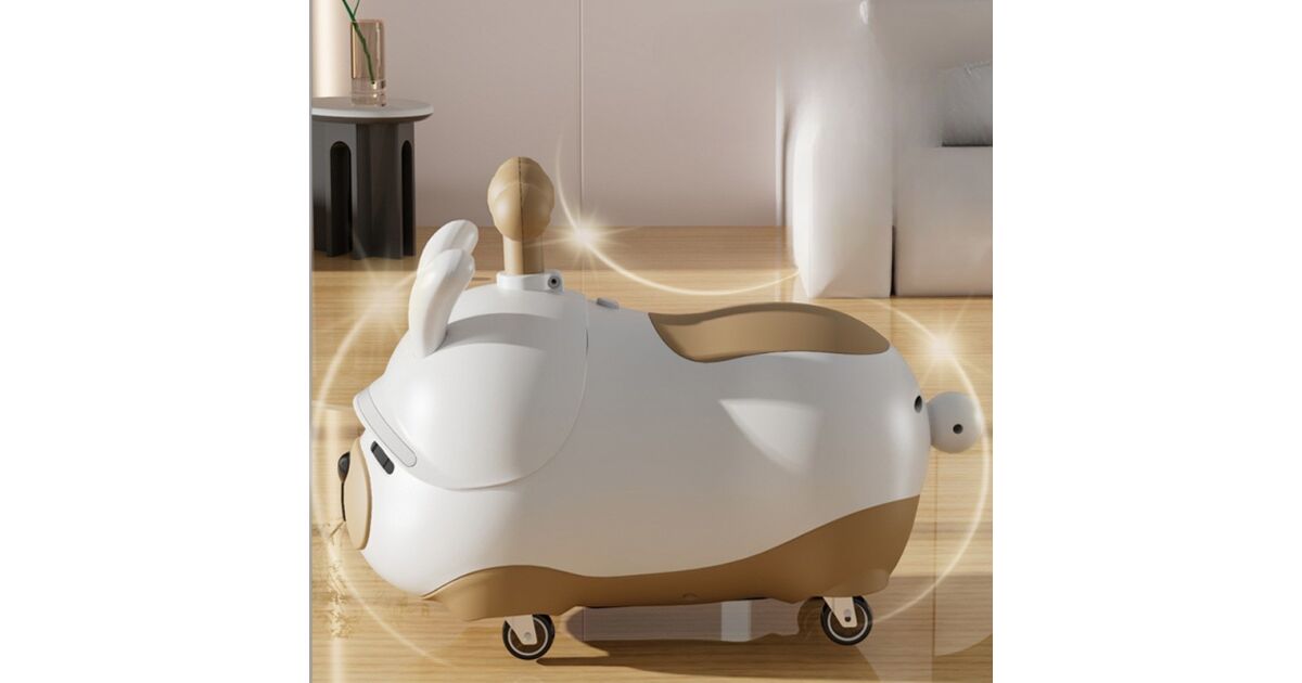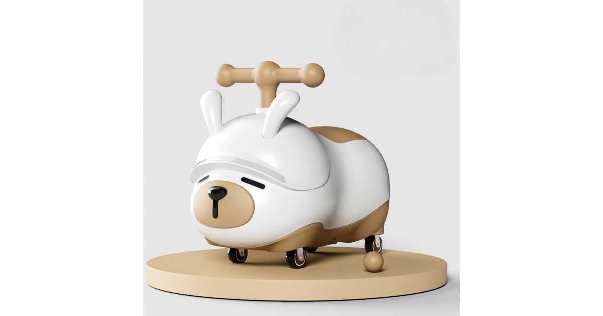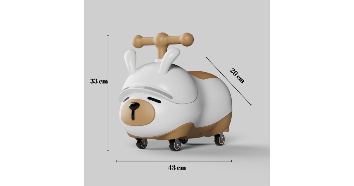 -Flippy Ride-On Car, Anti-Tip System, Light & Sound System, Bluetooth, 1-3 Years, Puppy Model, 43 x 33 x 26 cm, White - Brown description of