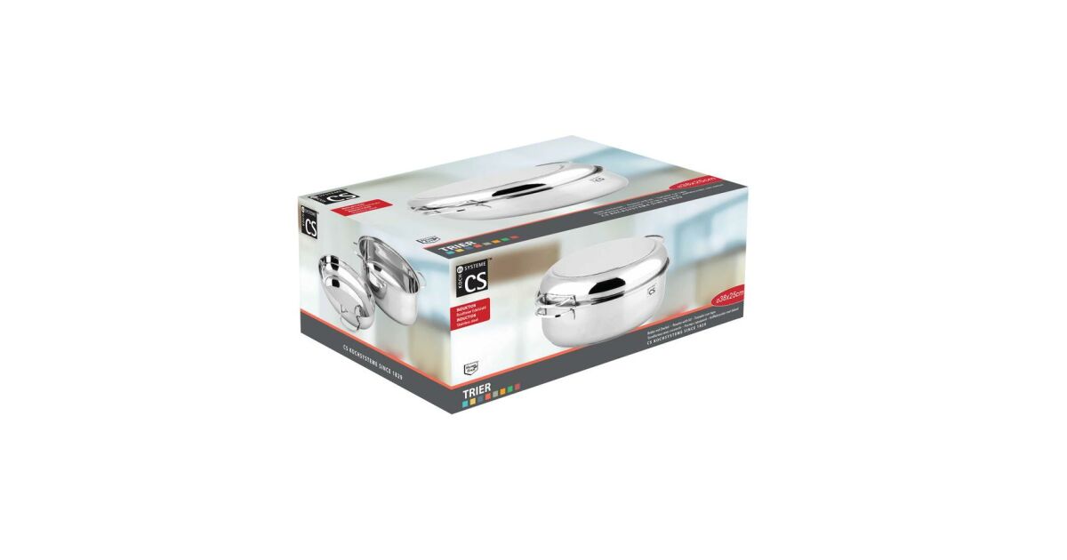 Carl Schmidt Sohn KOCH SYSTEME TRIER, stainless steel duck roaster/roasting pan with lid, 38 x 25.5 cm description of