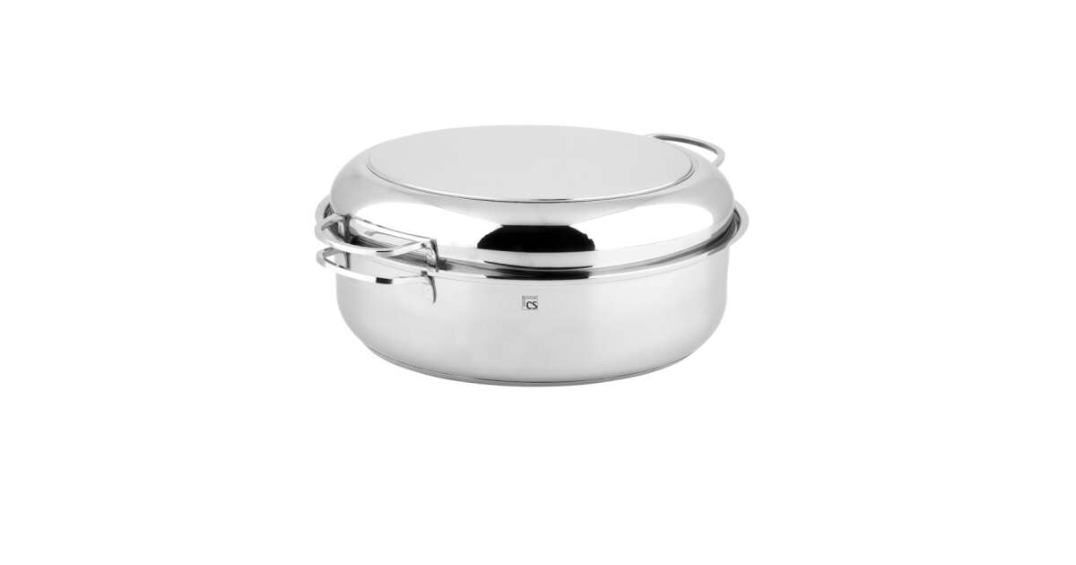 This high-quality, stainless steel duck roaster/baking dish is the ideal choice for making delicious, juicy roast duck. The lidded dish retains the food's moisture and aroma, guaranteeing perfect roasting results.