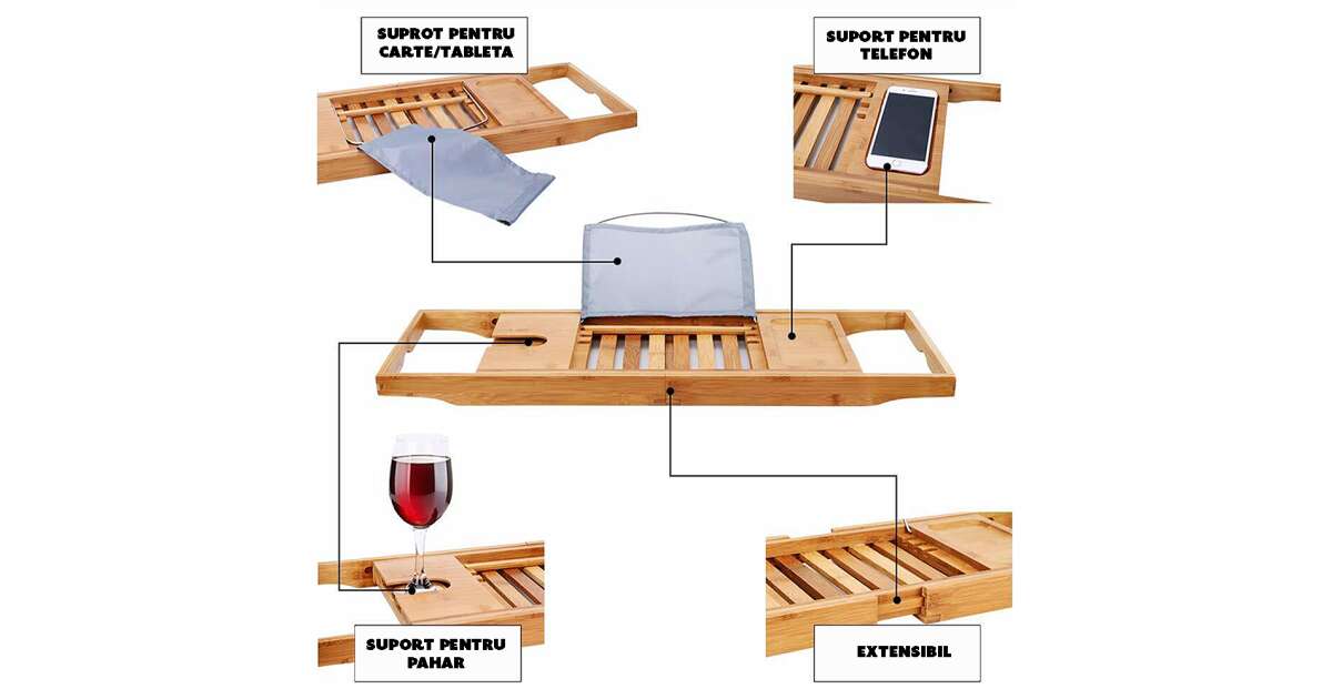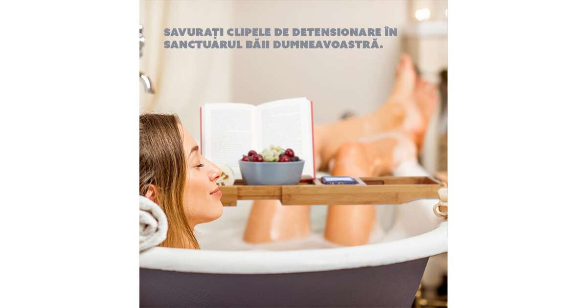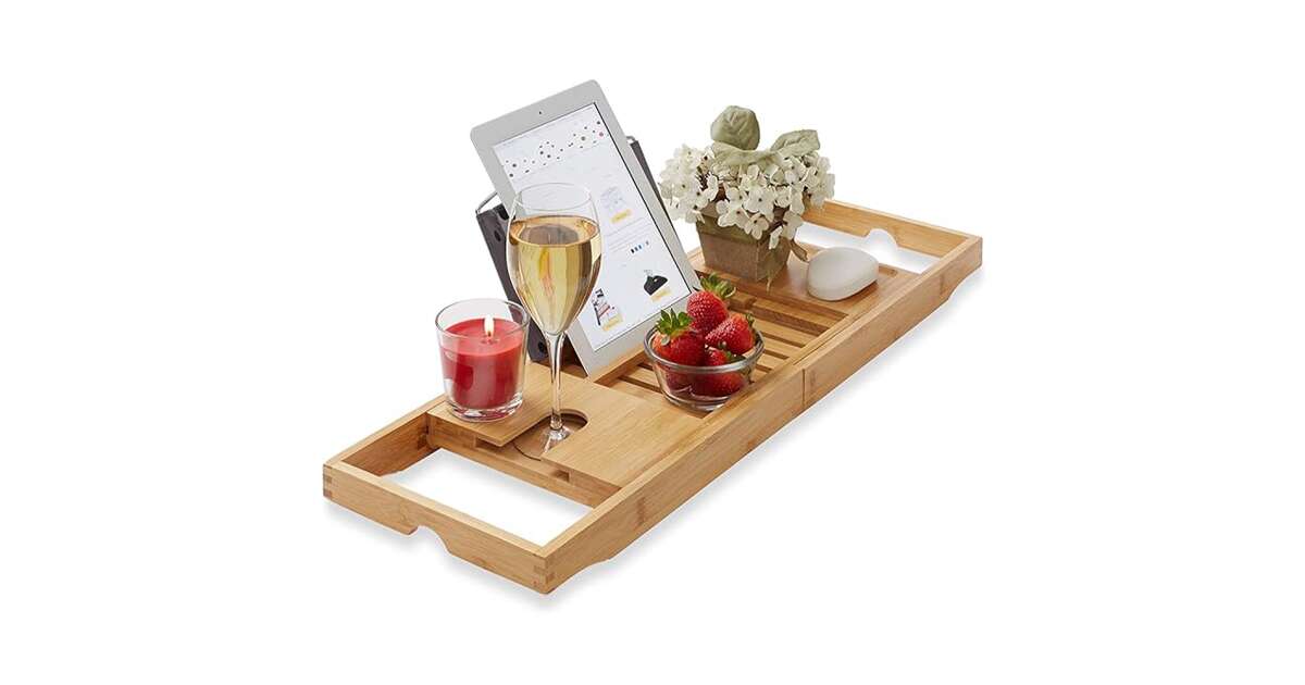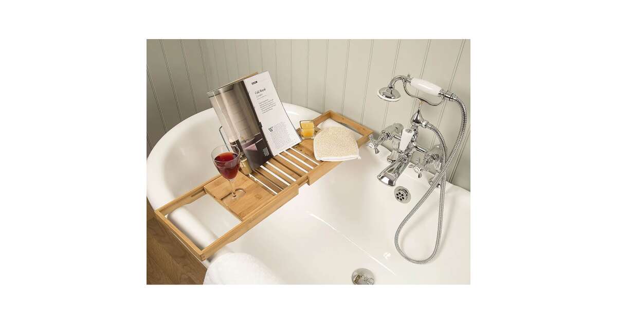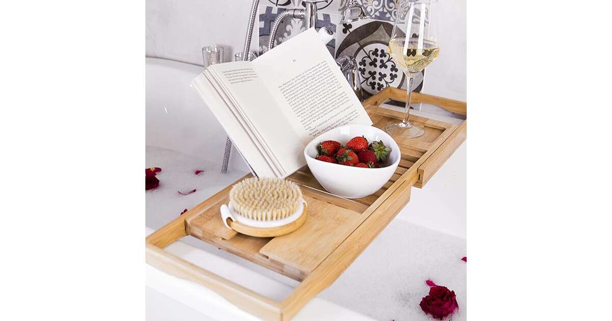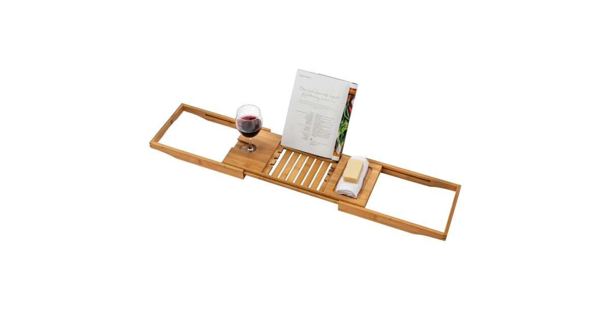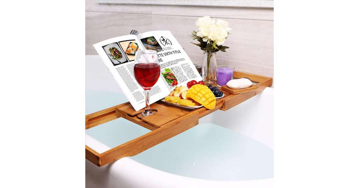 Enjoy the perfect bath experience with this extendable bamboo bathtub caddy! Keep your favorite things close at hand while you relax in a hot bath.