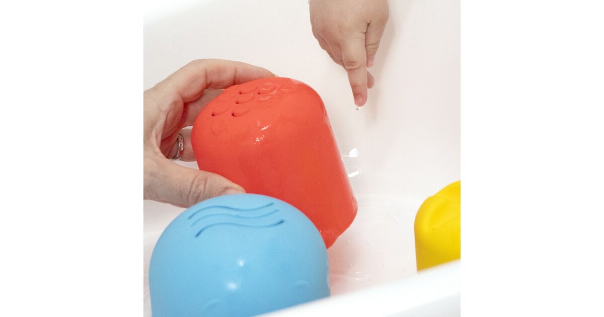- Pour water into the cups and watch it flow through them! (bath toy)