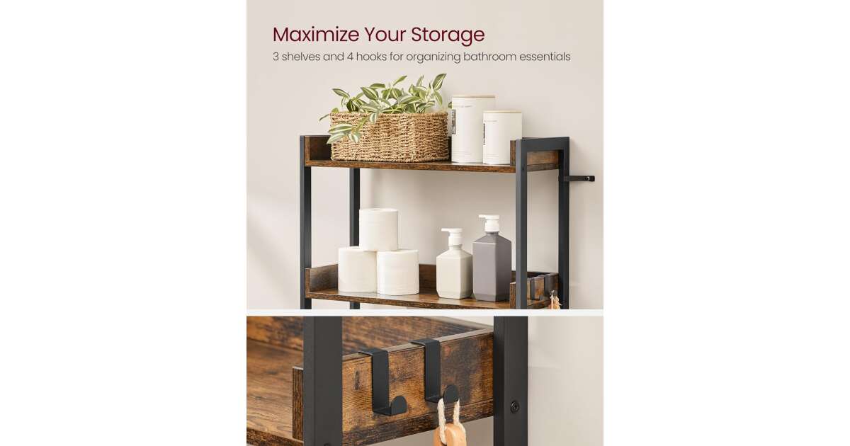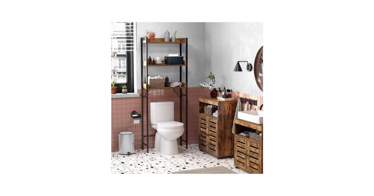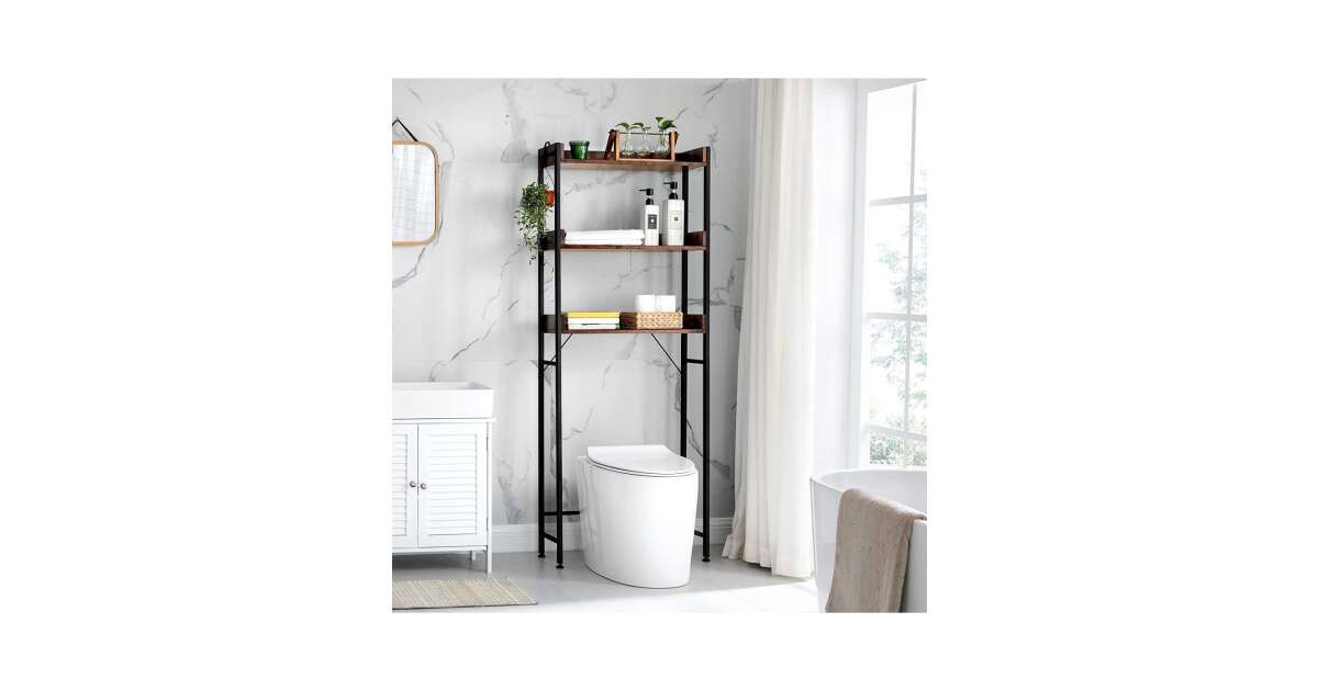 This 3-shelf VASAGLE bathroom shelf is the ideal solution for bathroom organization. Mounted above the toilet, it provides extra storage space for your toiletries, towels, and decorations. The rustic brown and black color combination gives your bathroom a modern and stylish look. ✨