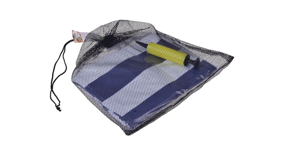 Inflatable Blue-White Striped Floating Mattress with Mesh Sides - 115 cm x 135 cm description of