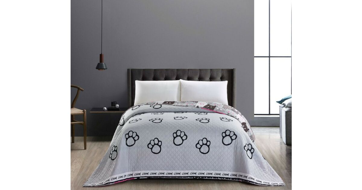 Bedspread CATS INVASION grey printed microfibre 220x240 DecoKing
