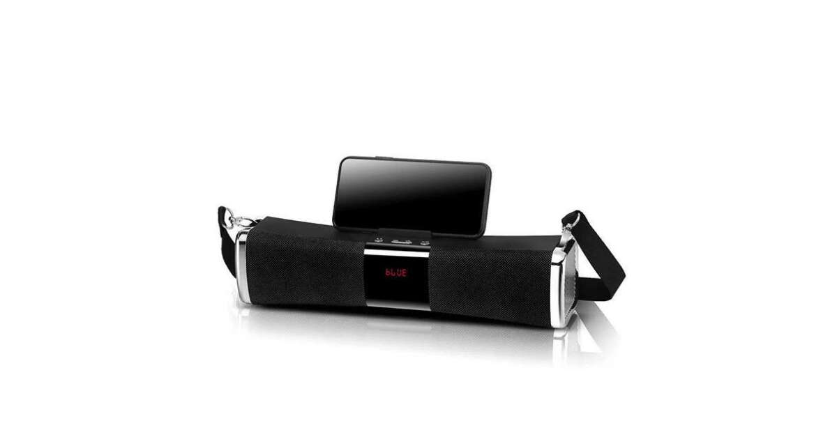 -Portable Bluetooth Speaker with Phone Holder and FM Radio, Outstanding Sound, Black description of