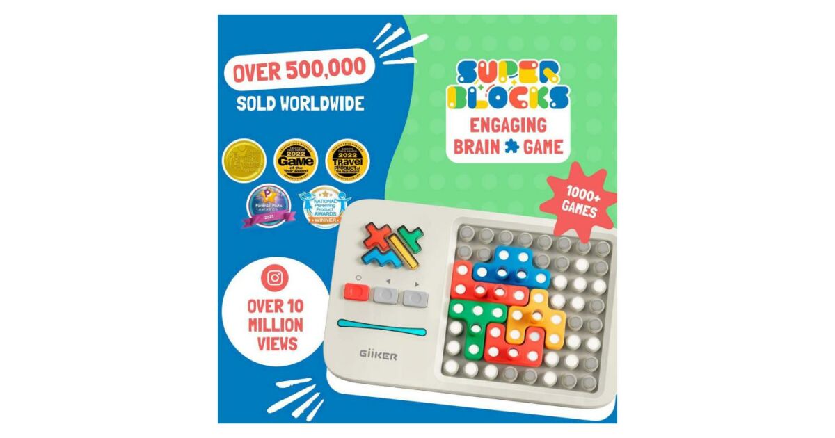 This award-winning GiiKER Super Blocks logic game offers over 1000 built-in challenges for ages 6 and up, improving problem-solving skills, concentration, and hand-eye coordination. It's perfect for kids and adults alike! 🎉