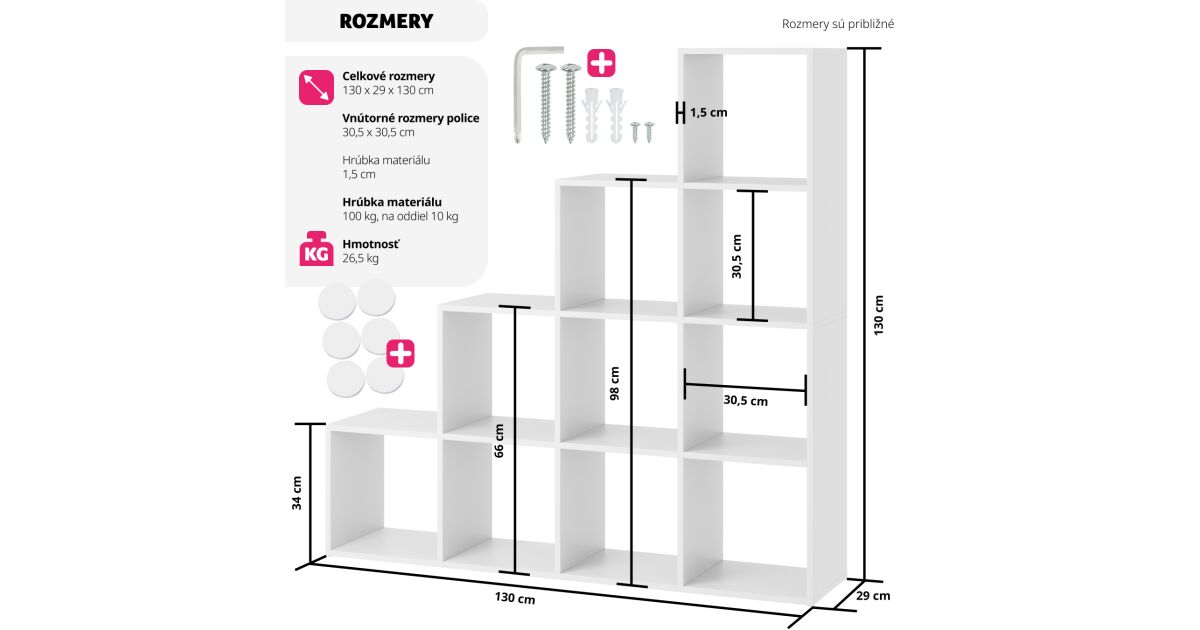 - High Load Capacity: Thanks to its robust construction, it can hold even heavier objects (total load capacity 100 kg, load capacity per compartment 10 kg).