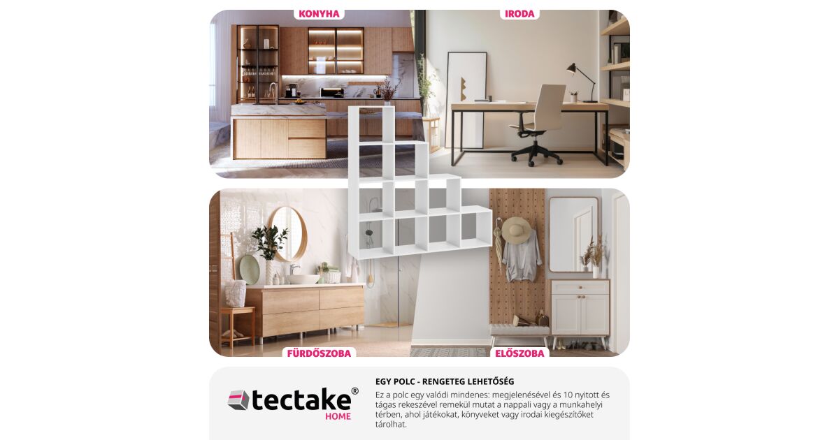 The tectake Talisa bookshelf is an elegant and functional piece of furniture that will perfectly complement your interior. Its asymmetrical cube design will add a modern touch to your space. With ten open compartments, it offers plenty of space for books, decorations, toys, or office supplies. Thanks to the stepped arrangement of the compartments, everything is neatly organized, and you can stylishly display your favorite items.