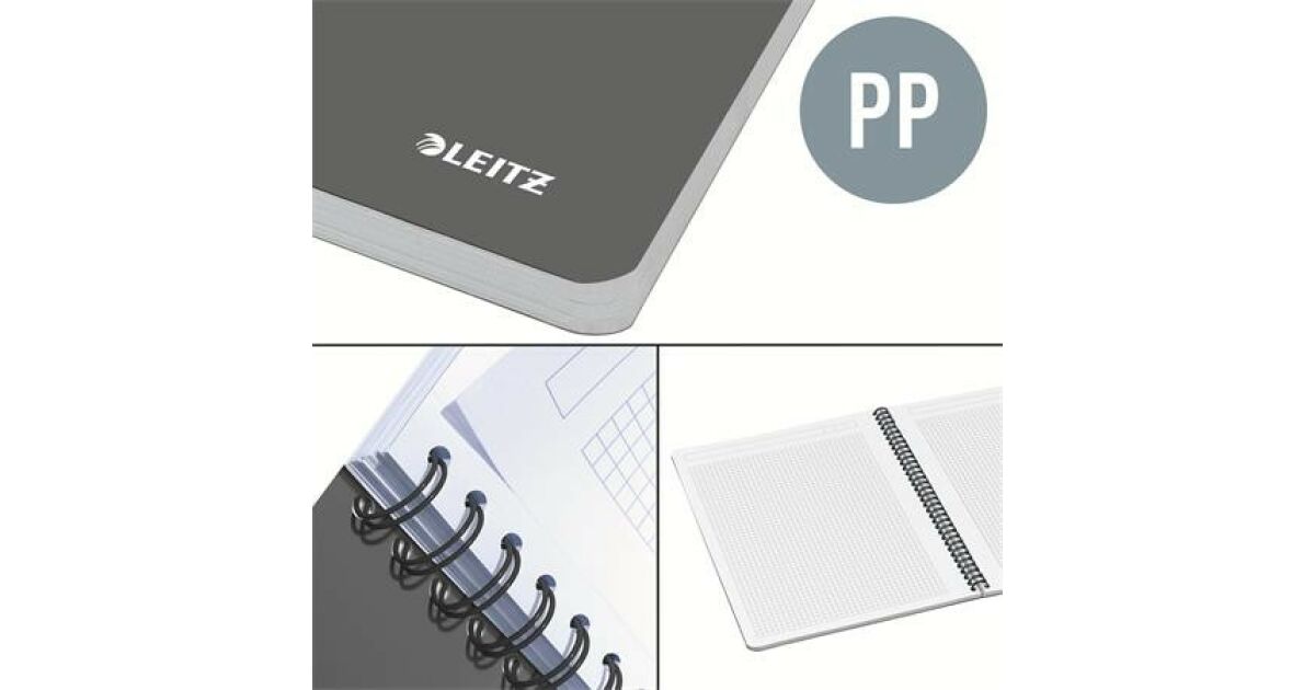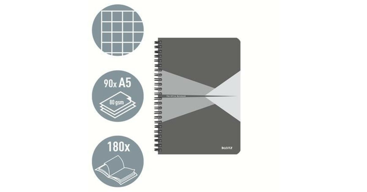 Leitz "Office" 90 sheets A5 grey PP cover checkered spiral notebook description of