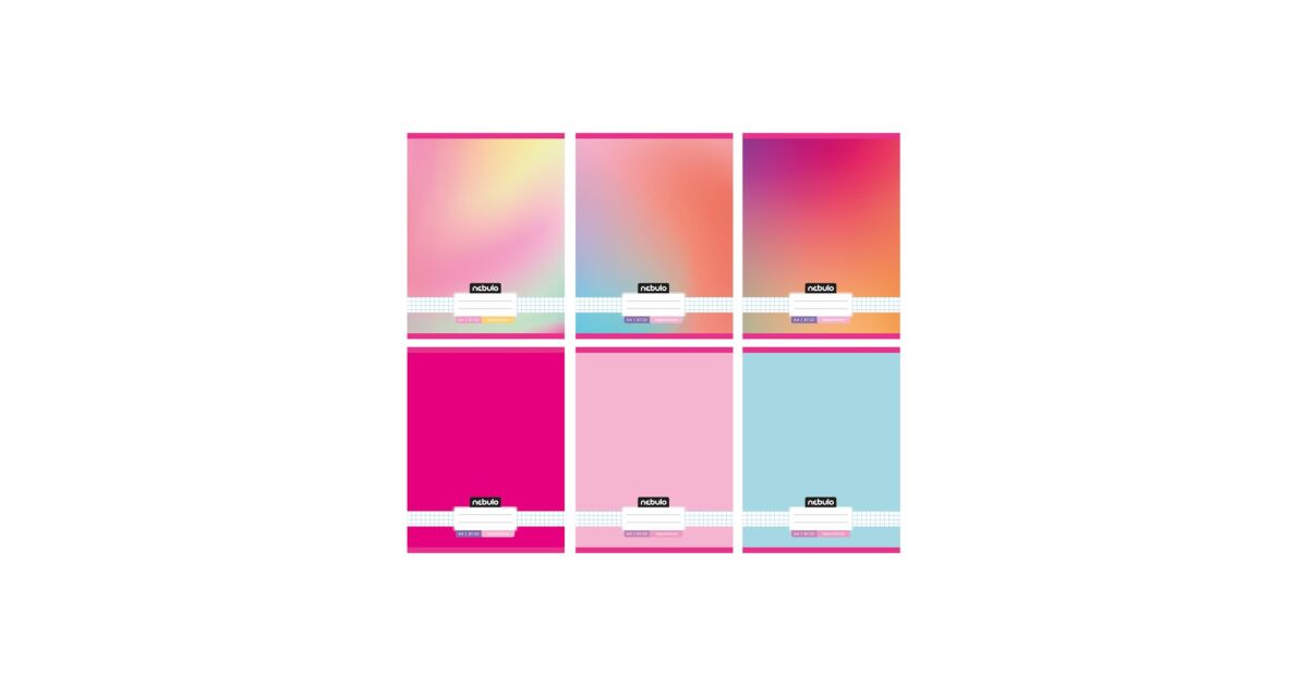 Cheerful, colorful A4 grid notebooks, perfect for school or home use! The pack contains 12 notebooks, with 6 different trendy designs: 3 monochrome and 3 gradient versions. Each design includes 2 notebooks.