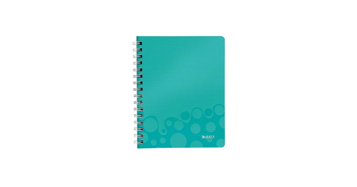 This LEITZ WOW spiral notebook is perfect for note-taking, brainstorming, and any task that needs a practical and stylish notebook. The ice-blue, modern design notebook not only looks great but is also incredibly practical.