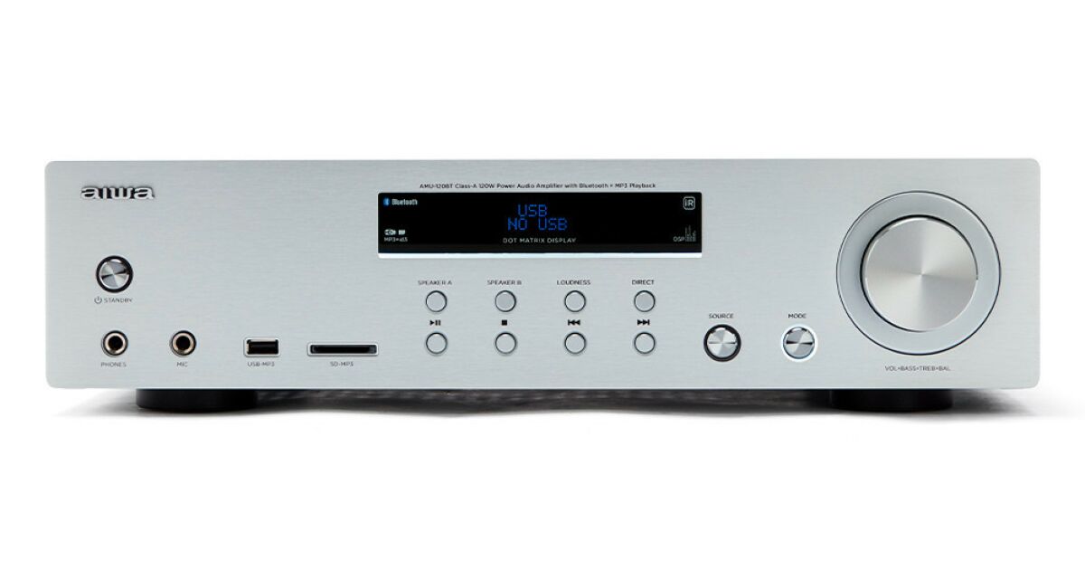 Aiwa AMU-120BTSR Stereo Integrated Amplifier with USB, SD Input, and Bluetooth Functionality