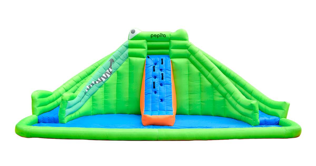 This Pepita water bouncy castle has a smaller bouncy area, two slides and a larger splash area, providing a spacious space for children to have fun. Double stitching has been used for the bouncy castle, with durable 420D oxford fabric and PVC tarpaulin. Reinforced fabric is used for the bouncing area to prevent the seams from snagging. The inflatable bouncy castle is designed with safety features and complies with manufacturing laws. Anchoring stakes firmly secure the castle to the ground. The air blower constantly supplies sufficient air to the bouncy castle to ensure that it can be used properly and safely by children. It takes about 5 minutes to assemble the castle, including the instructions. As quickly as it can be lowered, you can take it with you wherever you go with the included bag. The water bouncy castle, which resembles a crocodile, is a fun and exciting inflatable structure that will provide hours of fun for young and old alike. Its water jets and slippery surface offer unique fun compared to the traditional bouncy castle experience. Whether it's sliding down the wet slide or jumping into the water-filled paddling pool, this activity is sure to create lasting memories of summer fun. Kids can cool off from the heat while staying active and being with friends, making it a popular choice for parties, events and summer gatherings.