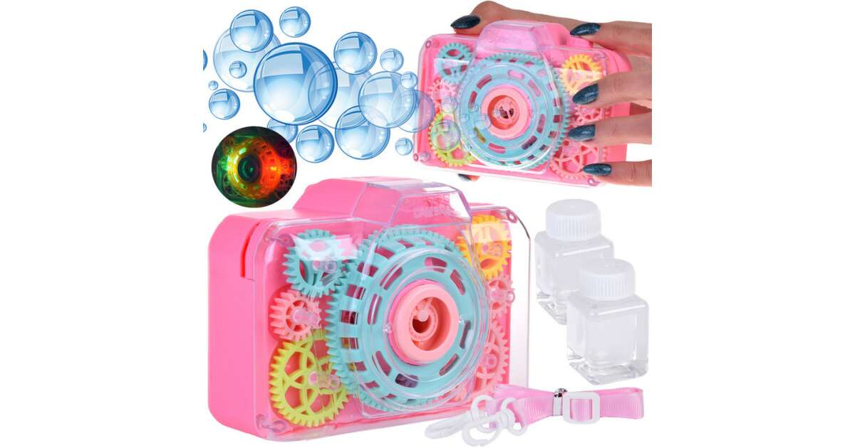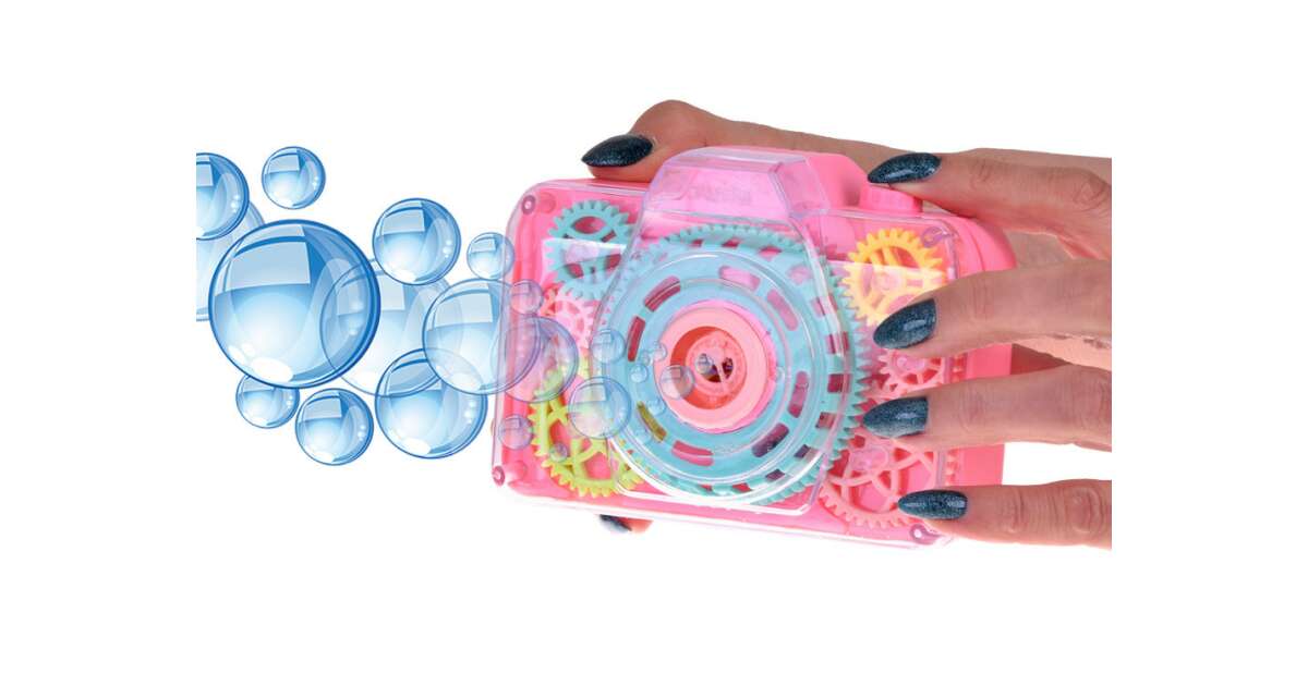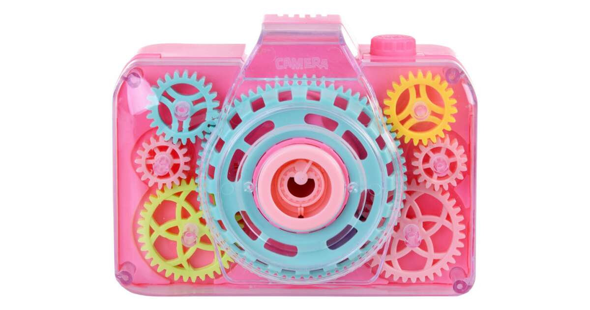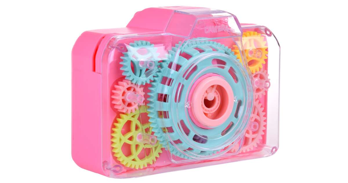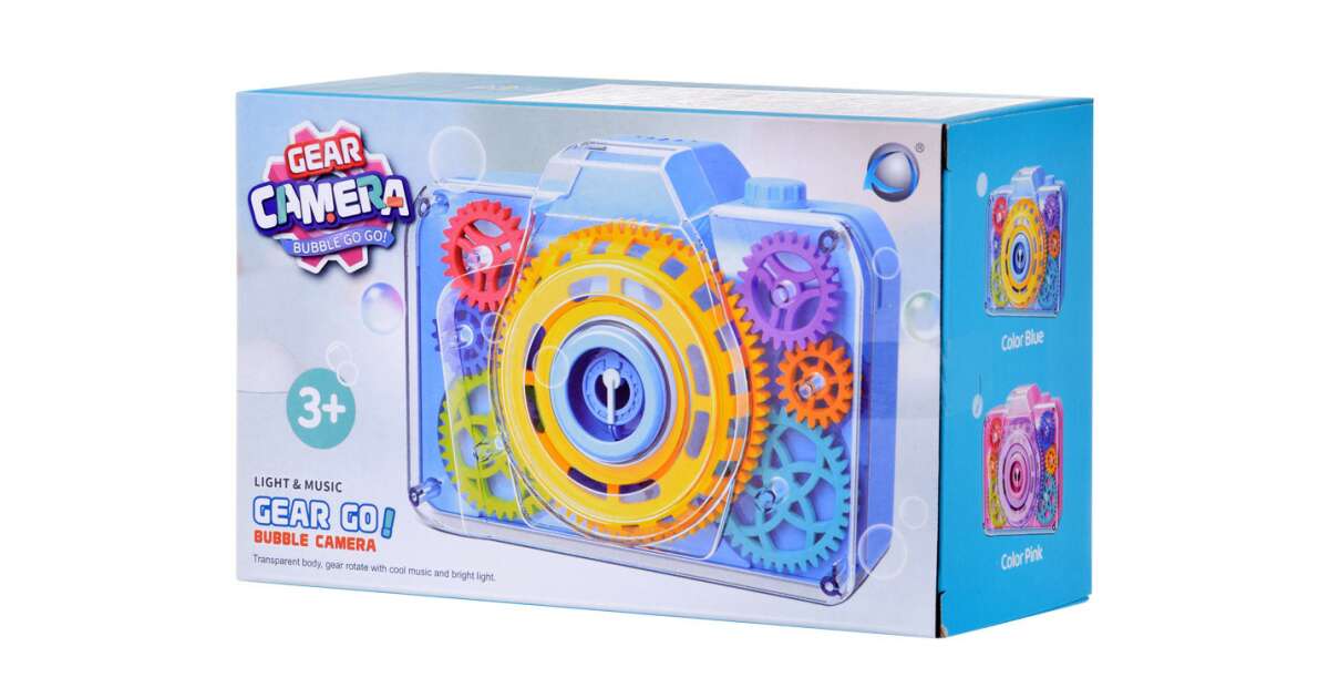 Get ready for some fun with this cheerful bubble-blowing camera! This creative toy is not only entertaining but also develops a child's imagination and senses. With every click, realistic shutter sounds and flashing lights make the game even more exciting. The built-in mechanism continuously blows magical bubbles, and the rotating gears provide a spectacular visual effect.