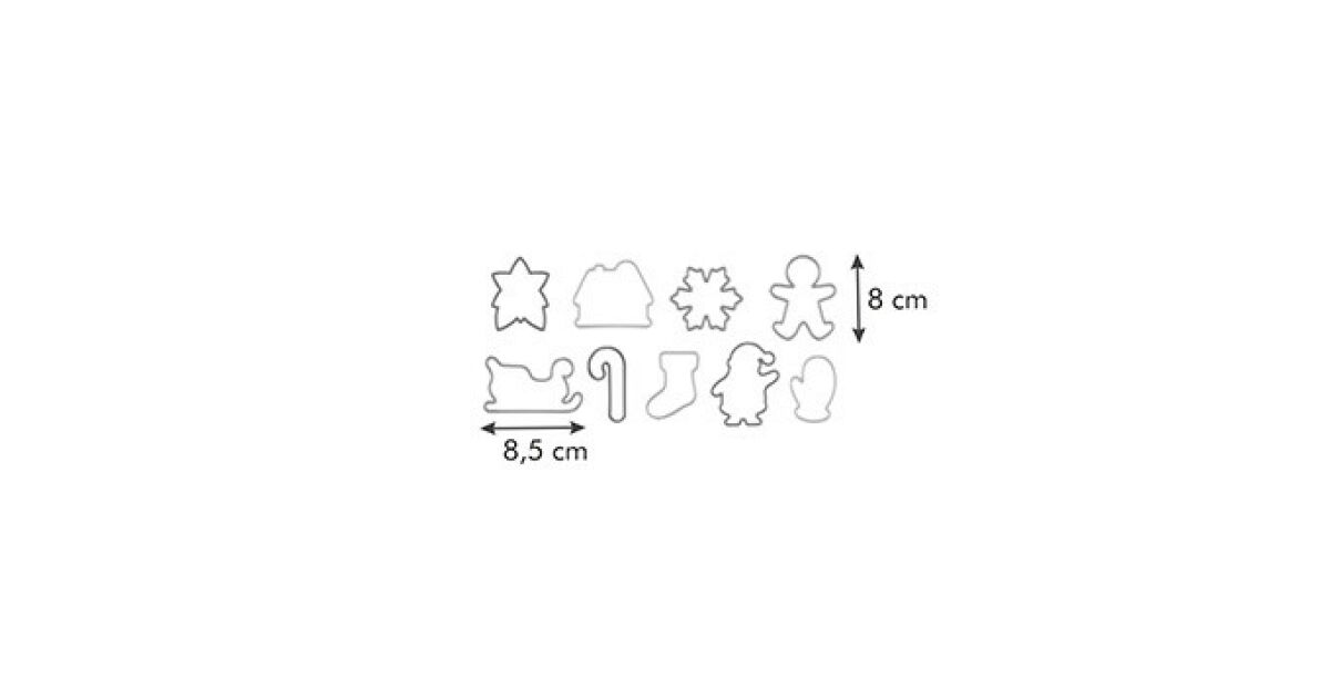 Make the most beautiful Christmas cookies with these fun cookie cutters! The Tescoma DELÍCIA set has 9 different Christmas motifs, so everyone can find their favorite. The set includes: Santa Claus, gingerbread man, snowflake, Christmas tree, gift bag, reindeer sleigh, little boot, house and Christmas star.