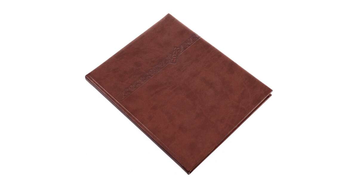 This stylish, brown faux leather planner is the perfect companion for organized and efficient work. Thanks to the weekly layout, you can easily plan your day and week. It is characterized by premium quality workmanship, with gold edging and a bookmark.