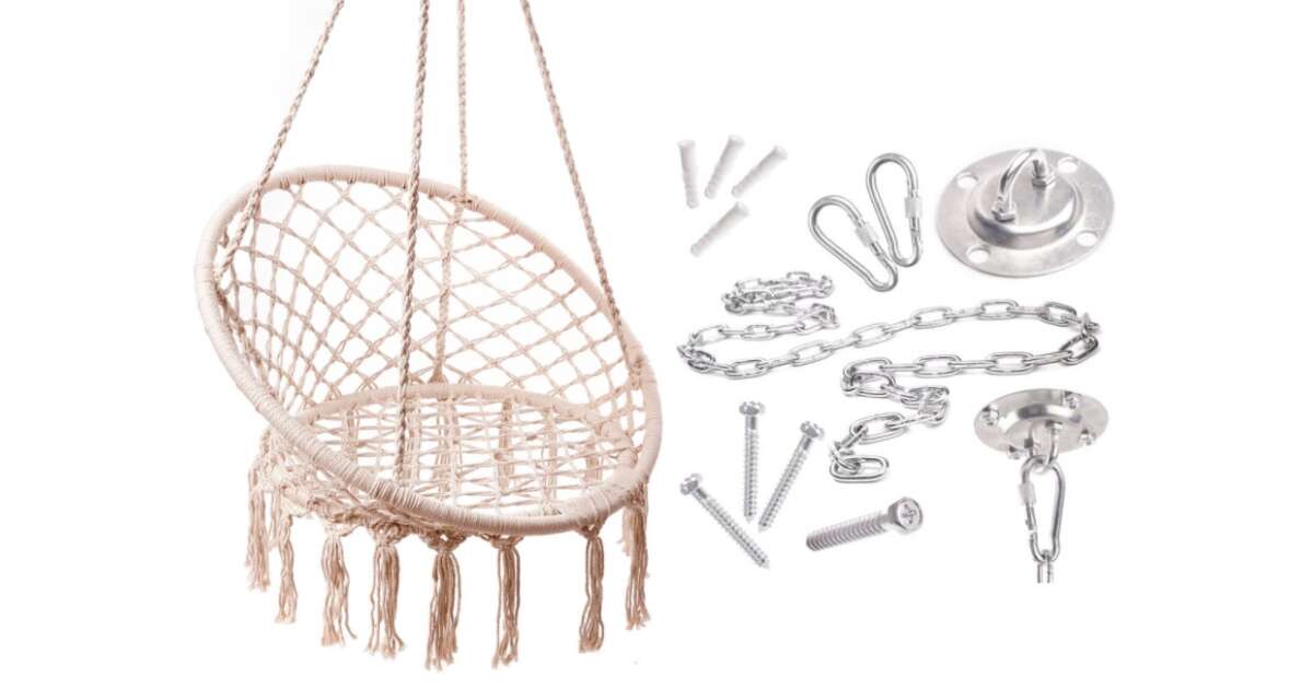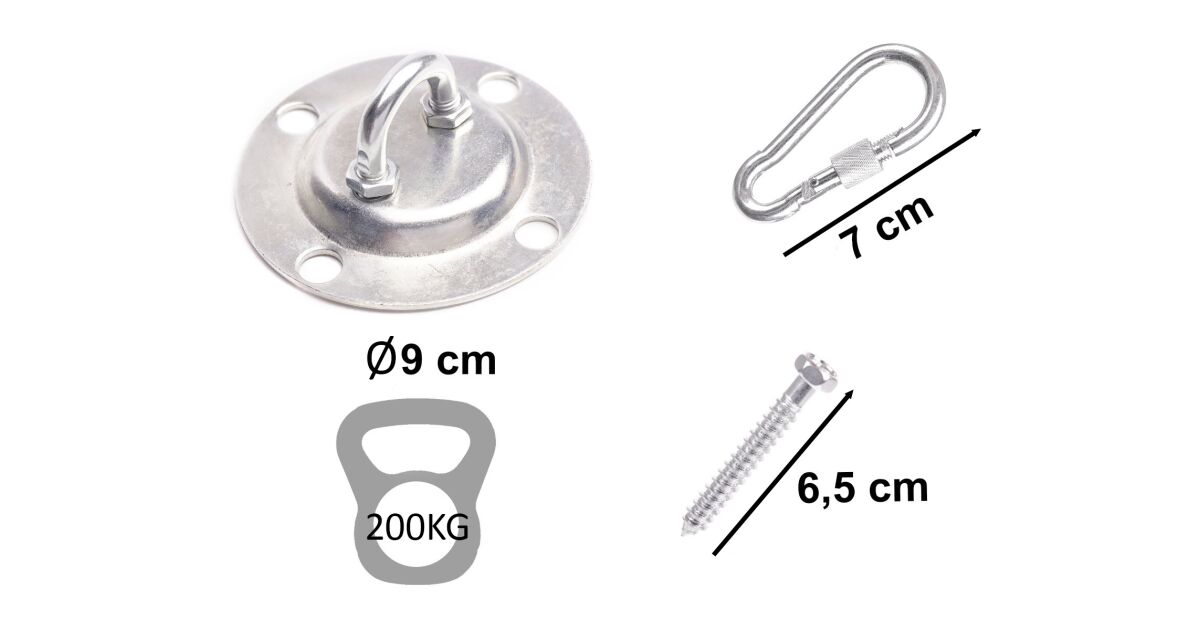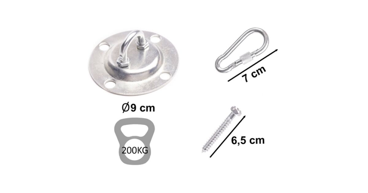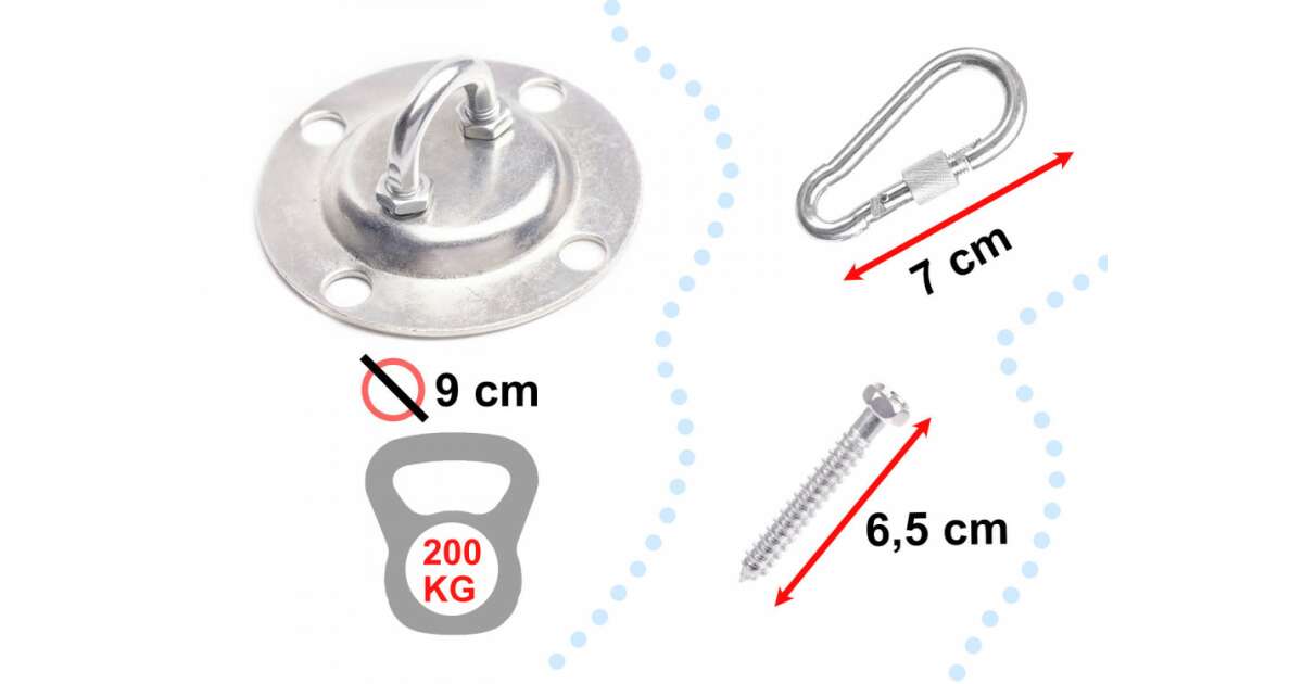 This sturdy ceiling mounting kit is perfect for hammocks and hanging chairs, with a load capacity of up to 200 kg! Easy to install, and allows for easy height adjustment thanks to the carabiner chain. Customers confirm that the product meets expectations and the price is also favorable.