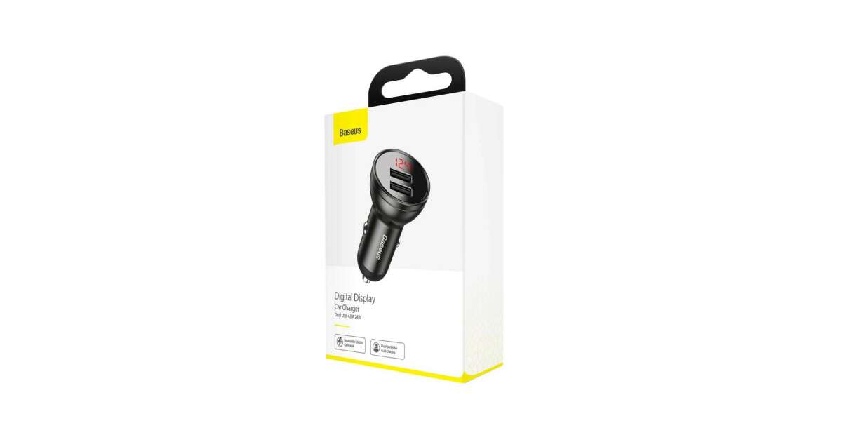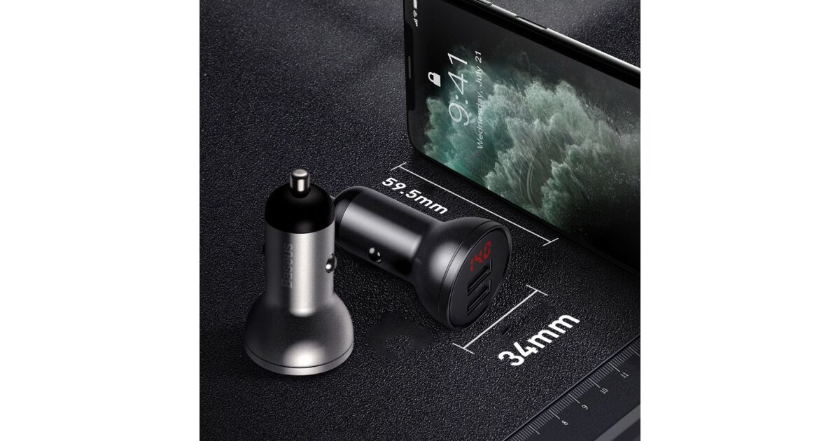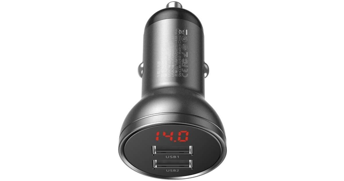 Baseus CCBX-0G Car Charger with LCD Display: Smart Charging, Dual USB Ports 🚗💨