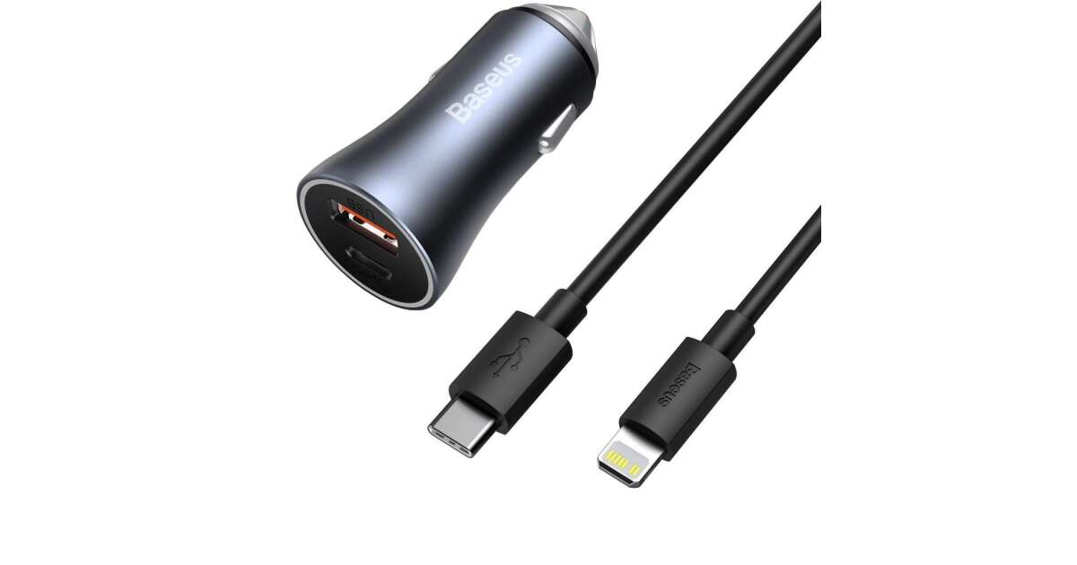 Baseus Golden Contactor Pro Car Charger, USB + USB-C, QC4.0+, PD, SCP, 40W (Grey) + USB-C Cable for iPhone 1m (Black) reviews