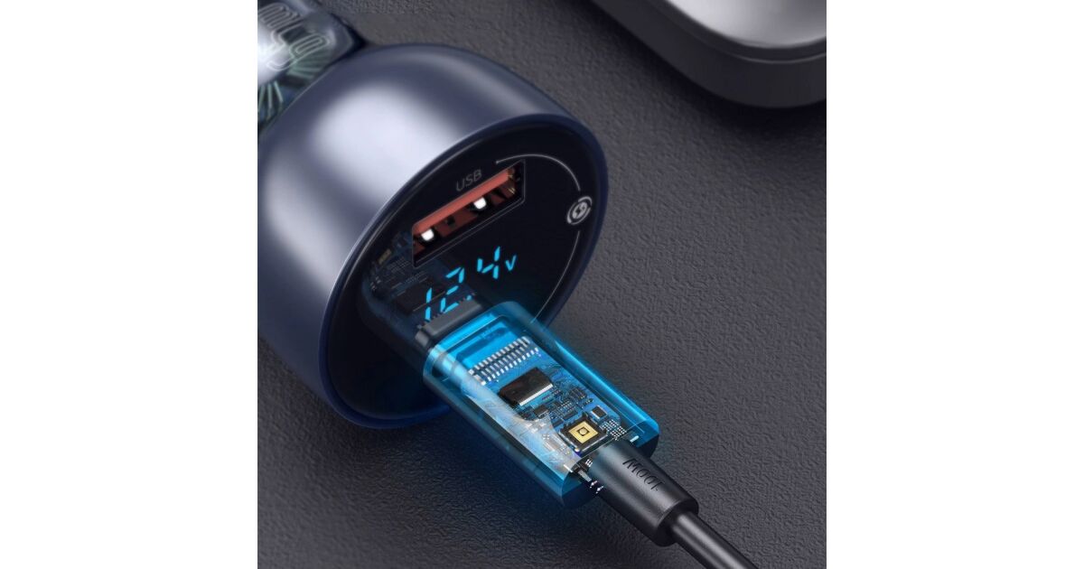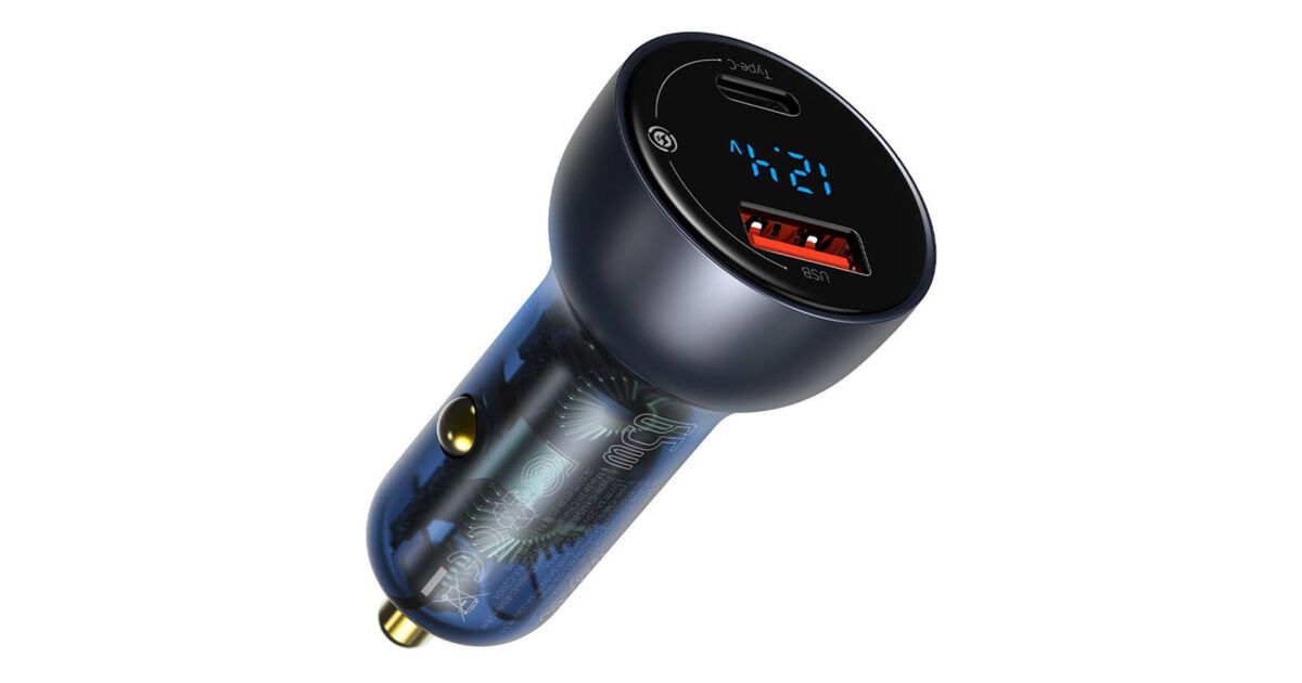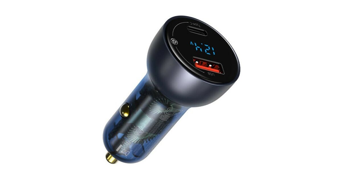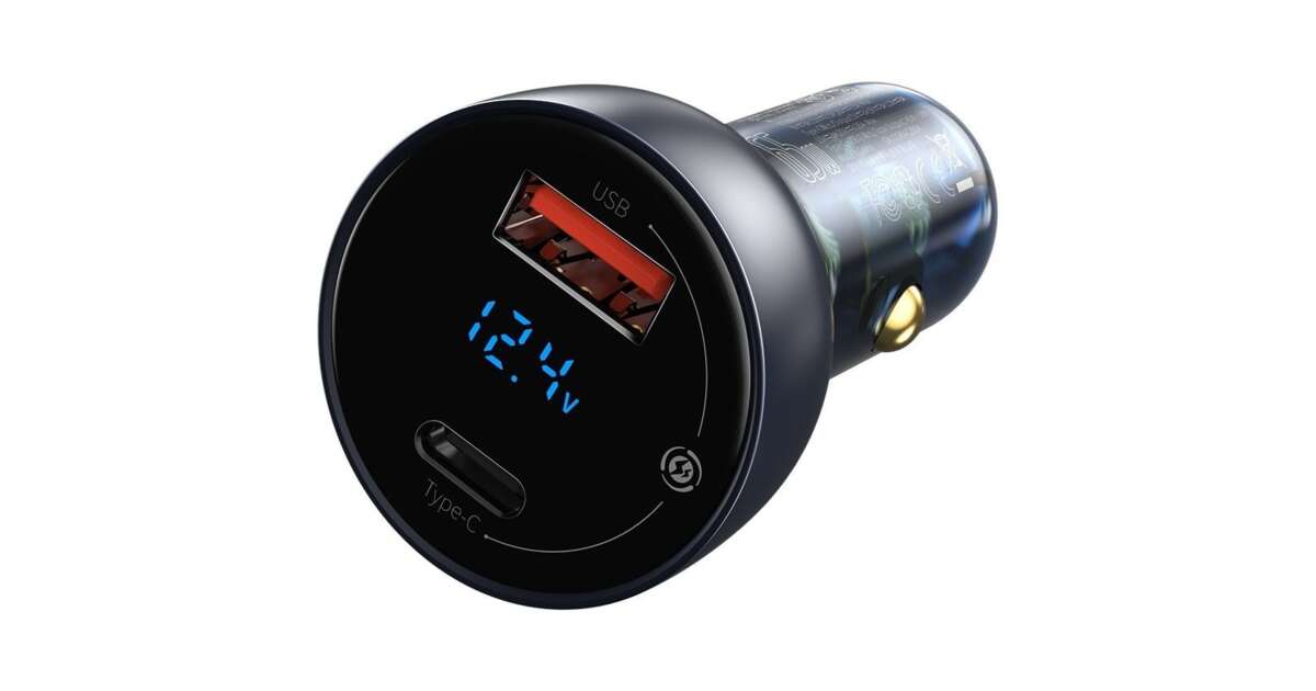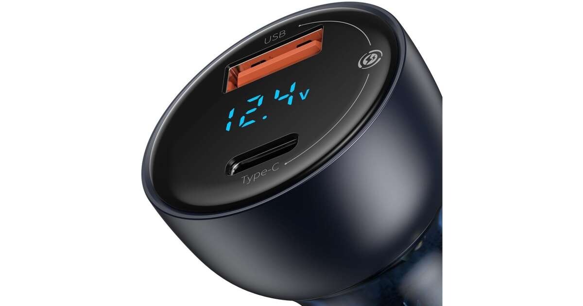 This Baseus car charger can charge two devices simultaneously using the latest fast charging technology. It features USB and USB-C ports, making it compatible with most smartphones and laptops. The built-in smart display continuously shows the voltage, so you always have control over the charging process.