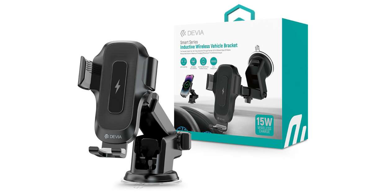 Devia Dashboard/Windshield Wireless Car Charger/Holder - Devia Smart Series Inductive Wireless Vehicle Bracket - 15W - Qi Standard - Black