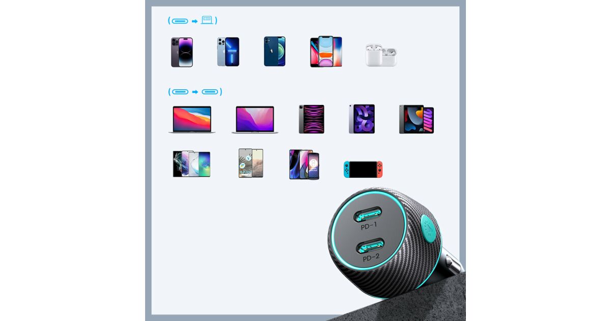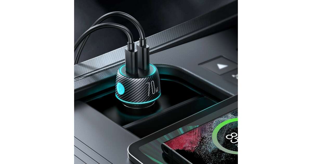 This Joyroom JR-CCN02 car charger can fast charge two USB-C devices at the same time, with up to 70W of power! Say goodbye to long charging times! ⏱️
