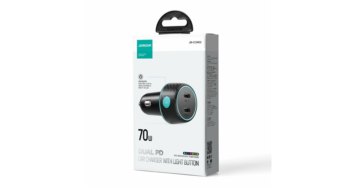 - 1x Joyroom JR-CCN02 Dual USB-C 70W Car Charger with LED Illumination