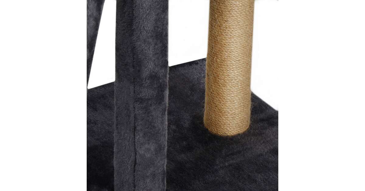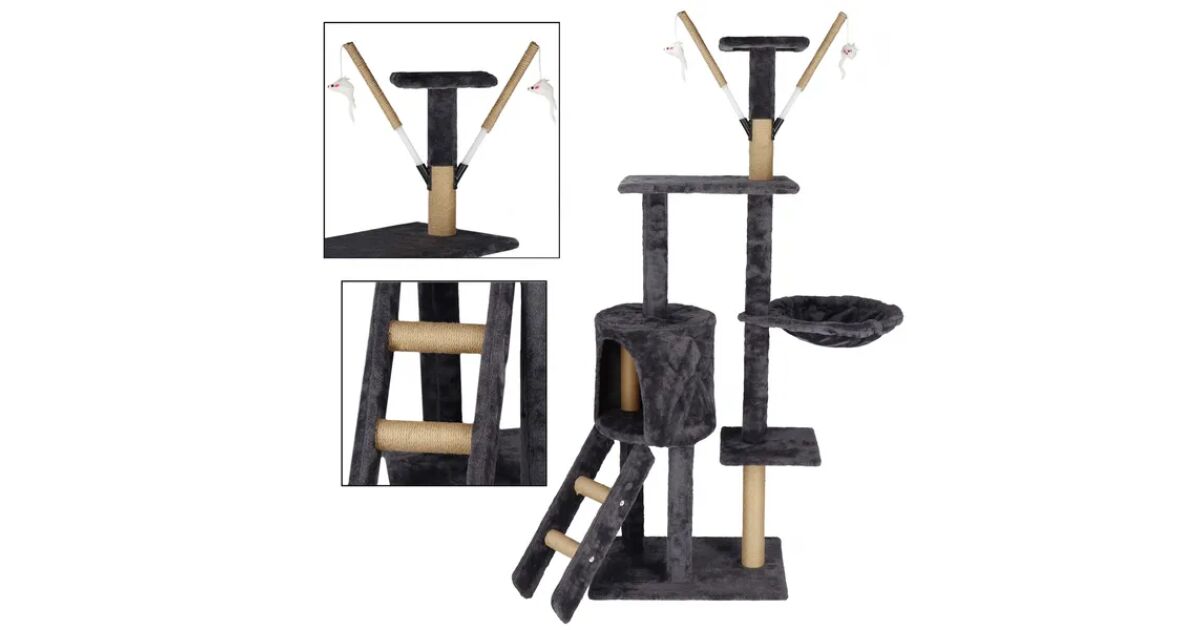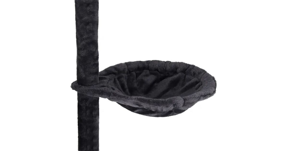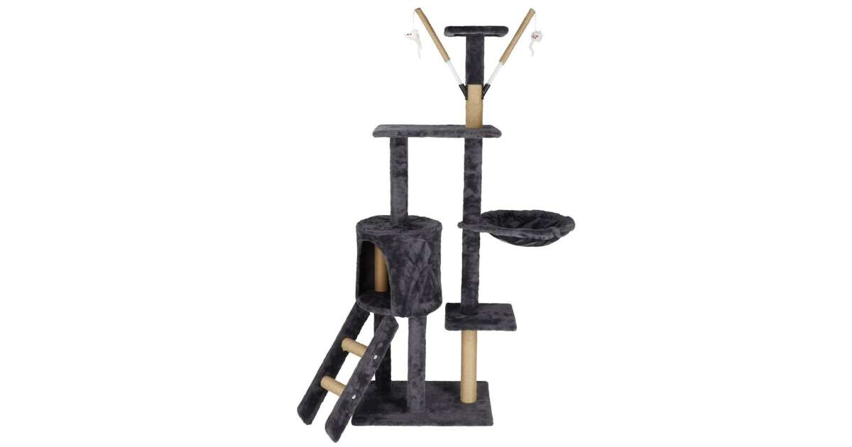 This large, 5-tier cat play center is guaranteed to be a hit with your kitty! It offers tons of space for climbing, lounging, and scratching. The soft plush material creates a comfy and safe environment, and the graphite, brown, and white color scheme will fit any home.