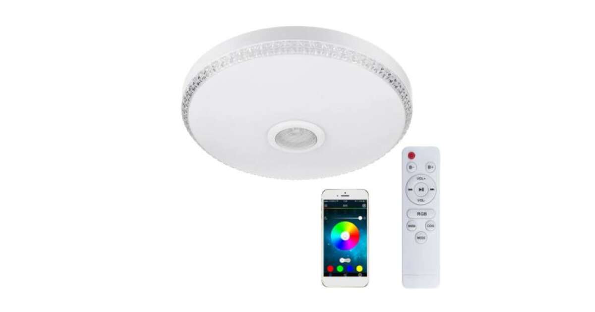 Bluetooth Ceiling Lamp with RGB Color and Speaker, Remote Control, R15, 50cm Diameter description of