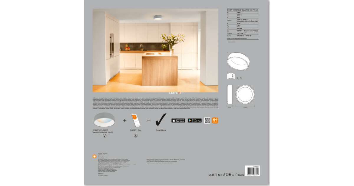 Modernize your home lighting with this stylish and intelligent Ledvance Smart+ WIFI ceiling lamp! With its 45 cm diameter, it is a perfect choice for both smaller and larger rooms. Thanks to the built-in WiFi, you can control it from your smartphone, so you can easily adjust the brightness and color temperature (3000-6500K). Enjoy the perfect light for any mood, even from afar! ✨
