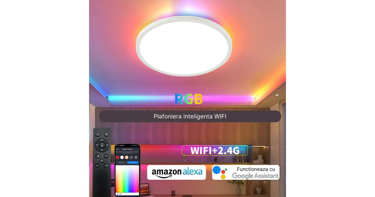 MaGeCa Smart LED Ceiling Light, RGB, 32W, Adjustable Color Temperature and Intensity, Warm/Neutral/Cool Light (3000-6500K), Remote Control, Google Assistant/Amazon Alexa Compatible description of