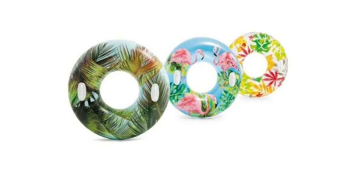This 97 cm diameter Intex ring buoy is perfect for summer fun in the water, for kids and adults alike! Made from durable PVC material, this high-quality buoy will provide hours of fun. Two handy handles make it easier to stay afloat and practice swimming. Choose from fun, colorful designs (flamingo and tropical flowers)! 🌺