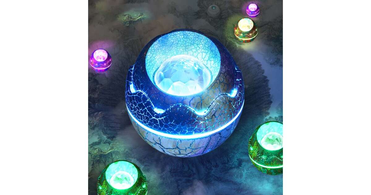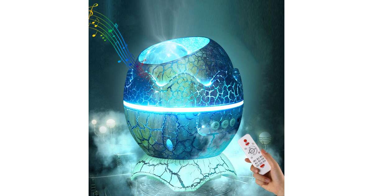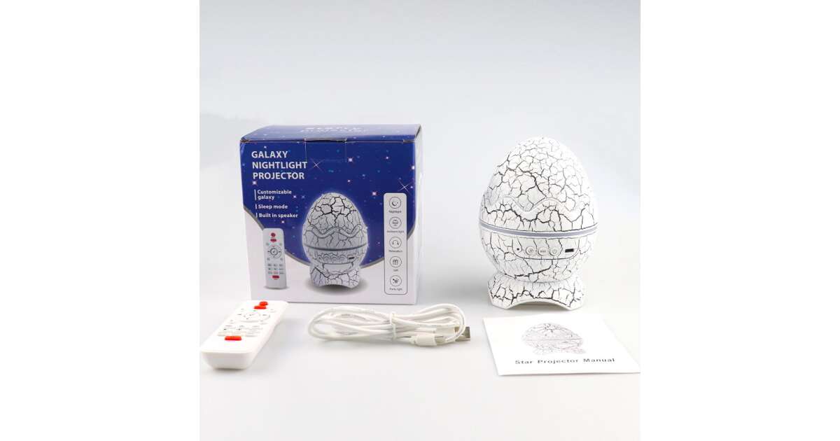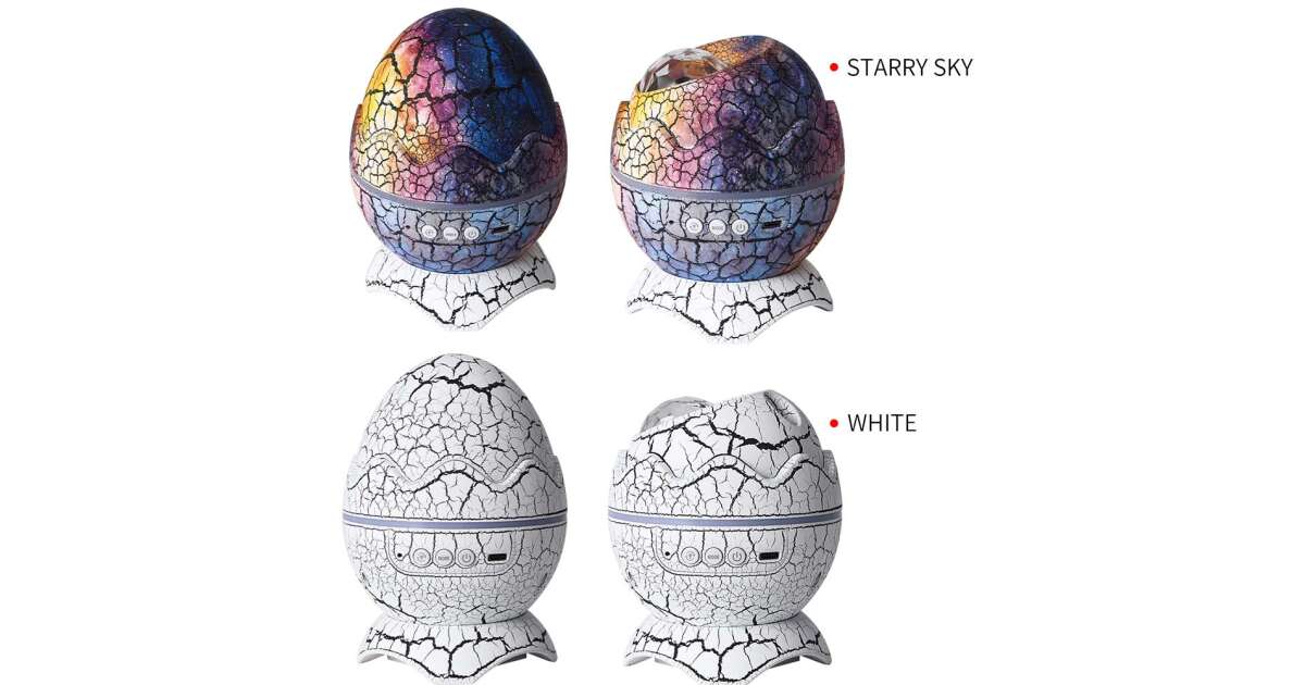 Drift off to sleep dreaming with this magical dino egg-shaped night light that projects a starry sky onto your wall and plays soothing sounds! Perfect for kids and adults alike.